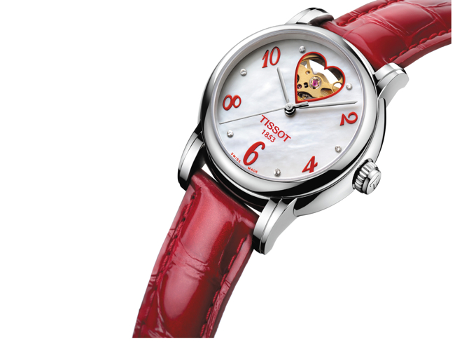 Ovom prilikom ističemo jedan od navedenih modela, s obzirom da se približavamo Danu žena, Tissot Lady Heart sat T050.207.16.116.02. Navedeni model je upečatljiv po otvoru na brojčaniku u obliku srca, oivičenog crvenom bojom, kao i crvenom kožnom narukvicom.
