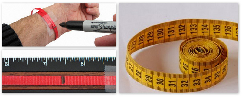Ukoliko već imate kaiš koji odgovara ali ga želite zameniti usled istrošenosti ili radi promene stila, skinite ga sa sata i postavite na lenjir kao što je prikazano na slici: