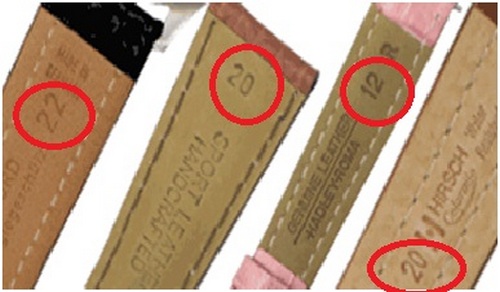 Ukoliko je na satu kožni ili gumeni kaiš, možemo biti pošteđeni petljanja sa merilima jer ih velika većina sa unutrašnje strane ima utisnutu dimenziju izraženu u milimetrima.