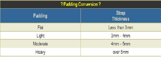 Dimenzija koja može biti važna pri traženju odgovarajuće zamene je i debljina kaiša. Obično, elegantni satovi imaju tanje kaiševe, a sportski deblje. U sledećoj tabeli možete pogledati debljine kaiševa: