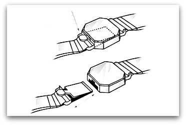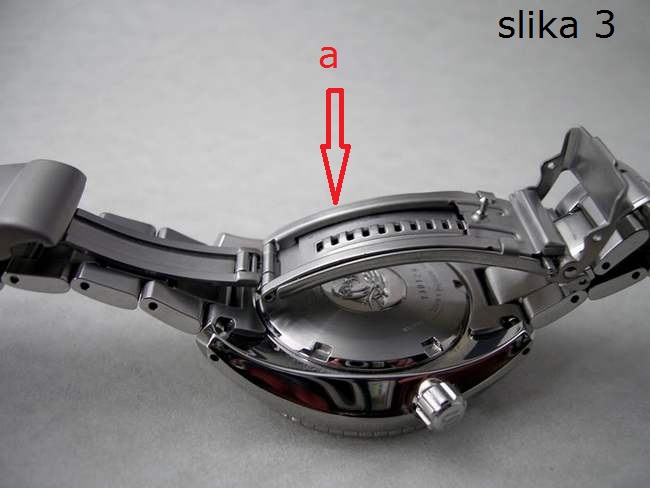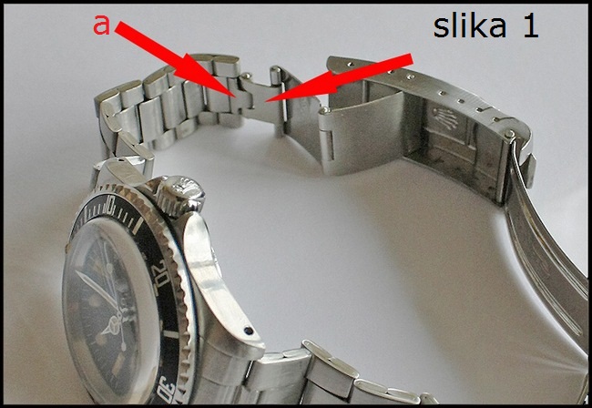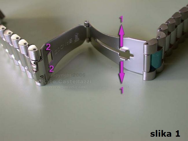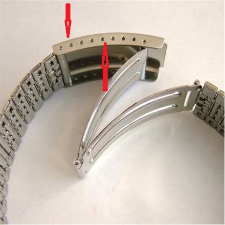 Pored grubljeg podešavanja skidanjem i dodavanjem segmenata, dužina metalnih narukvica se može fino podešavati putem nekoliko rupica na preklopnoj kopči (označeno strelicama). To je takozvano "mikro-podešavanje".