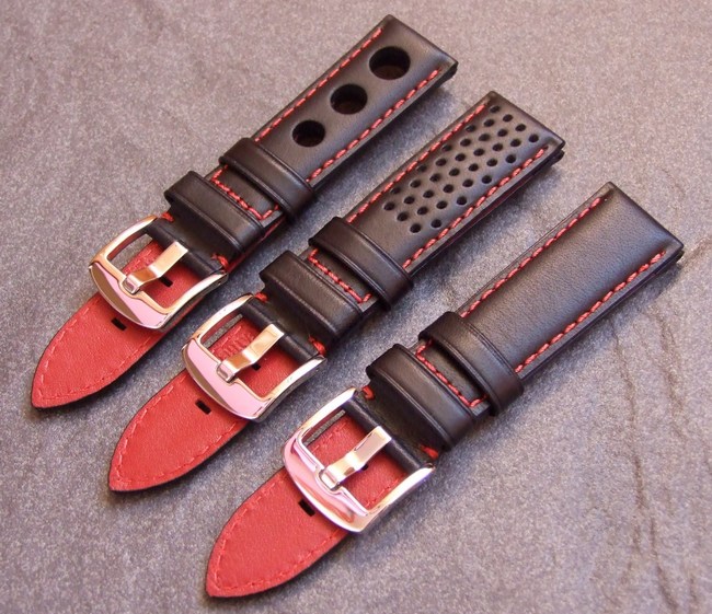 S leva na desno: Pilotski ''Flieger'' kaiš, ''Military'' kaiš, kožni NATO, dva modna kaiša, ''Racing'' ili ''Grand Prix' i nekoliko drugih, bezimenih: