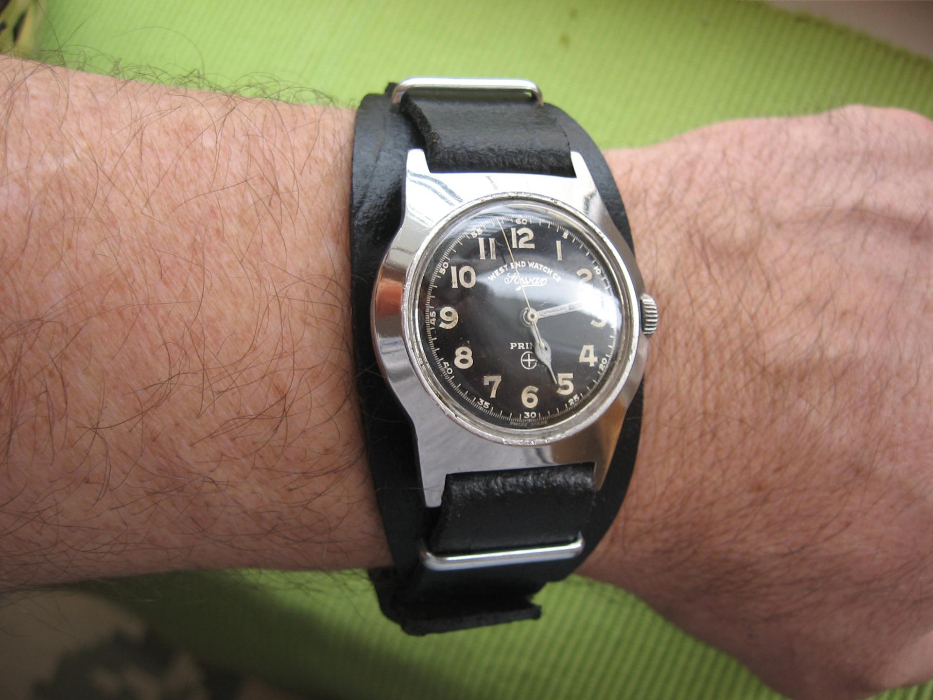 Malisa iz West End Watch je od nabavke bio izazov za resavanje kaisa. Precnik sata od 36mm sa ciferom od 27mm se malo gubio na mojoj ruci pa je bio neophodan dodatak da se istakne ono sta bi trebalo. Osovinica u lugovima terala u ocaj jer je kruta veza a i odstojanje do kucista sata, od malo vise od 1mm, je limitiralo izbor koze. Da ne duzim, stradala futrola pistolja jer je unutrasnja koza bila tanja i taman da se progura kroz prostor izmedju osovinice i kucista. Bilo muke dok se sklone postojeci konci i na kraju ostade "materijala" gotovo u milimetar za rezervnu varijantu podloge na kaisu. Bez obzira sto je u alat za izradu ukljucen i jedan specijalni deo, prava ne gresku nije bilo i to na prvom pokusaju sa kozom kao materijalom. Dragocena pomoc Corel-a je nametnula utisak da u ovoj situaciji nisu pozeljni stepovi, pogotovu ne beli, jer bi bilo previse detalja koji bi maleni cifer ugusili i izgubila se osnovna stvar za vojni sat.