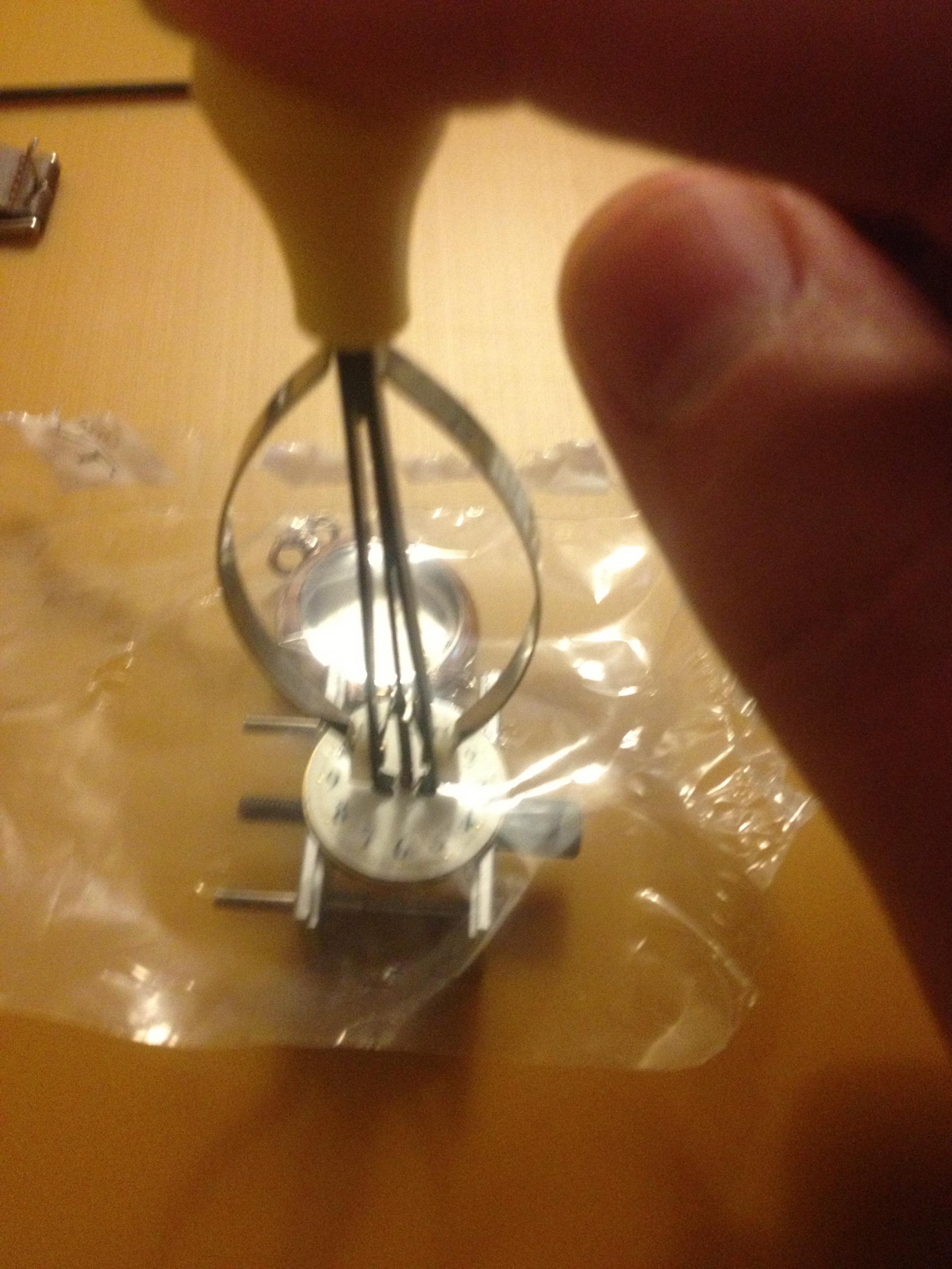 Prilikom skidanja kazaljki sa pinzetom vidi sliku bitno je staviti komad plasticne kese ili jednostavno iz komada papira izrezati sredinu i pometnuti na cifer da nebi bilo ostecenja .Ko nema ovakav ili slican alat moze i pinceta ali veoma oprezno i polako postupati sa kazaljkama . Ova specijalna pinceta za kazaljke je jeftina i jako jednostavna za upotrebu ,