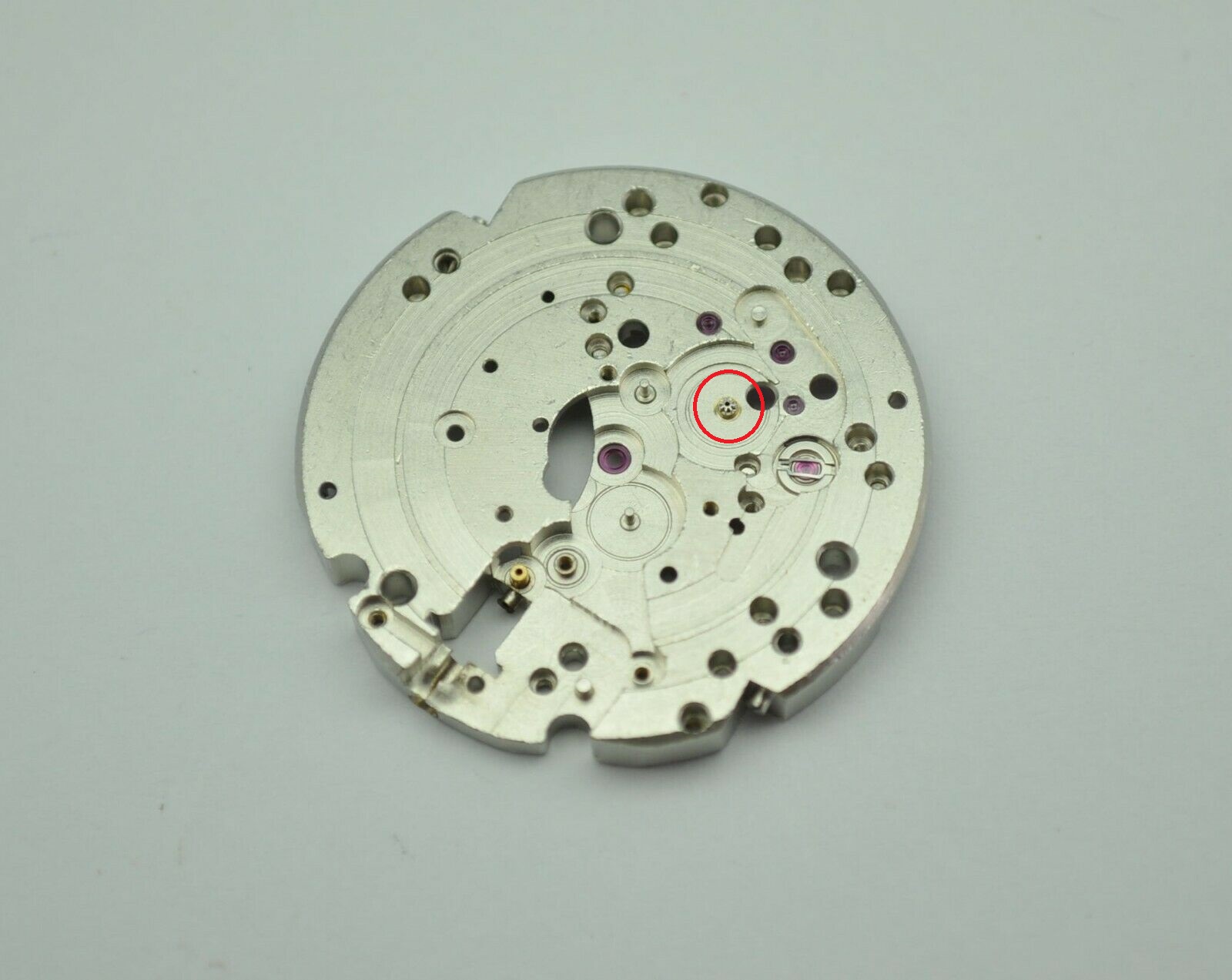 Moj urar mi kaže da treba naći i promijeniti ovaj zupčanik koji pokreće mehanizam datuma (na slici zaokruženo crvenim).