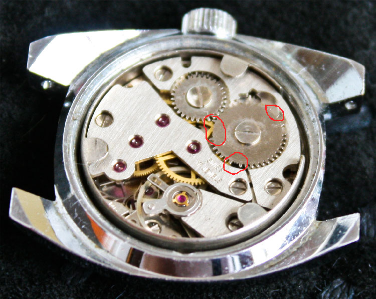 Obični se kad dođe do takvog kvara na satu radi konpletan servis jer ga se itako celog mora raskopat,osim ako je otpao kamen na ankeru ili na nemirnici.Postoje neki načini da se provjeri ispravnost osovina a da se sat ne raskapa ali je najsigurnije izvaditi sve zupčanike van i napravit kontrolu