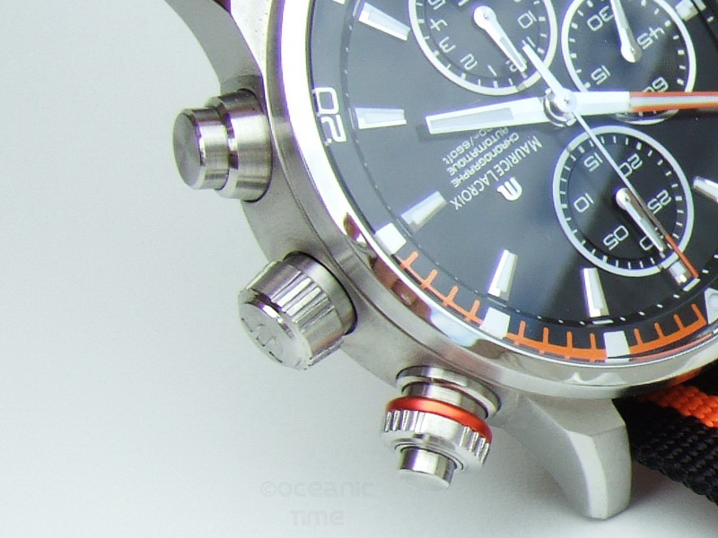 Maurice Lacroix izvršio malu izmenu na koroni koju je ubacio ispod stakla odnosno unutar brojčanika sata. Ona se pokreće pomoću krunice koja se nalazi na poziciji 2 sata tj. na gornjem tasteru štoperice. Time kućište ostaje čisto i brojčanik izuzetno pregledan. Brojčanik je crne boje, sa tri hronograf podbrojčanika, prekriven safirnim staklom. Prikaz datuma se nalazi na poziciji 6 sati. Krunica je uštafljujuća i ukrašena Maurice Lacroix znakom.