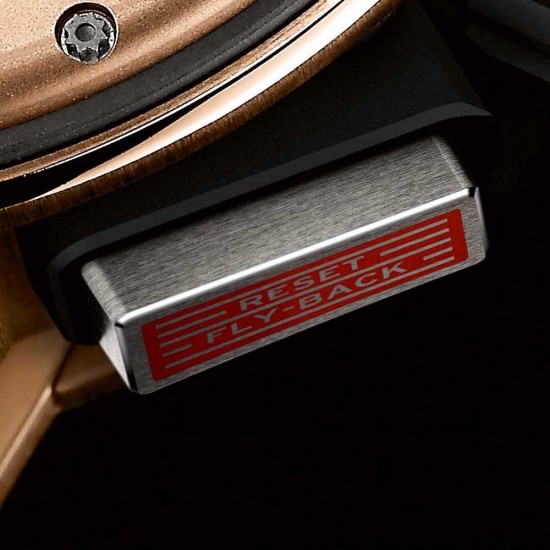 During deep sea dives, the water pressure on the pushers and crown is powerful enough to unintentionally operate one of the pushers, eg. the “start” pusher of the chronograph. In order to avoid any external pressure effect or accidental manipulation, Richard Mille has developed a locking crown for the RM 032 that locks the pushers and as a result ensures a perfect water resistance up to 300 meters.