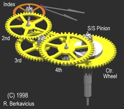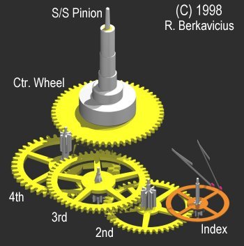 Na sledećim fotografijama može se videti na koji način indeks zupčanik prenosi energiju tj pokreće ceo splet zupčanika ( gear train ) koji na kraju pokreću kazaljke.