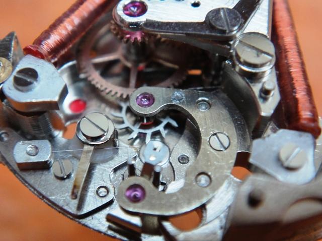 Kako to izgleda uživo može se videti na sledećih nekoliko fotografija. Prvo što treba uočiti jeste da je jedna od fotografija uvećana 200 puta kako bi se jasno mogla videti pogonska žičica, kočiona žičica i indeks zupčanik ( index wheel ). Drugo što se odmah može primetiti jeste koliko su sitni rubini na žičicama u odnosu na rubinski ležaj indeks zupčanika. To ilustruje koliko je preciznosti bilo potrebno pri izradi. Tako nešto možda ni danas nije lako postići a kamoli krajem 50-tih kada je ovaj mehanizam nastajao.