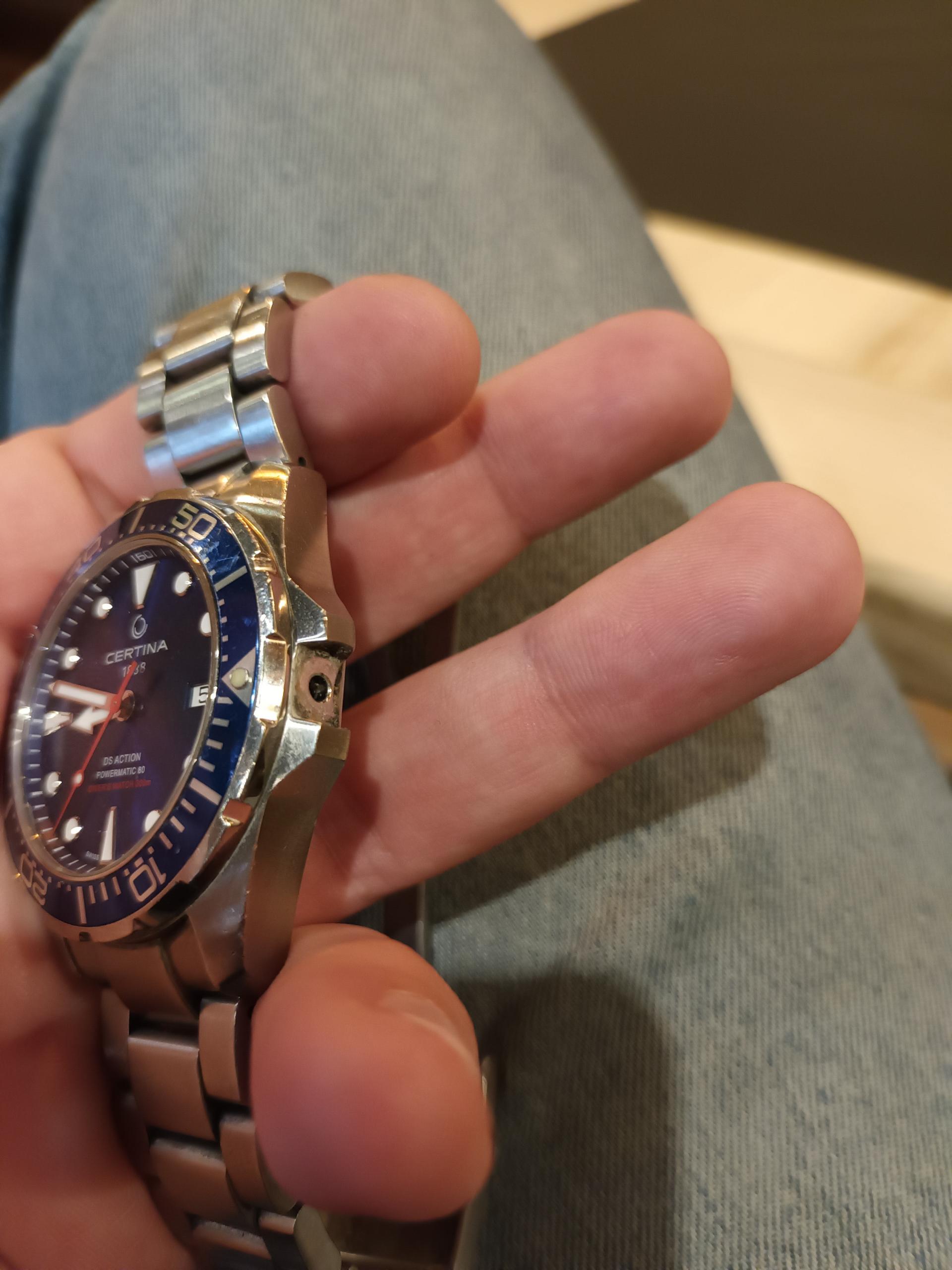 После 5 и по година, готово свакодневног ношења сата, дошло је до пуцања крунице (слике у прилогу).