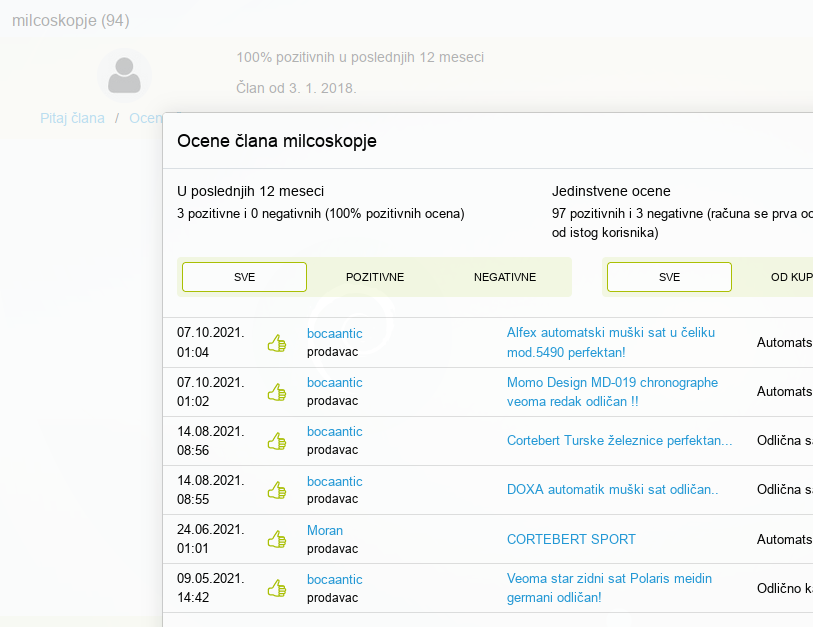 ali ima i nekoliko negativnih odavno, u jednoj ga neko optužio da je sat koji je prodao replika :)