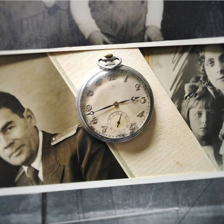 Džepna Omega iz tridesetih godina prošlog veka. Kod mene je otprilike četiri godine. Kada sam ga dobio planirao sam da repariram ciferblat, međutim sada mi ova patina na istom daje neku draž, kao podsetnik na neka davno prohujala vremena i ljude u njima. Termički obrađene kazaljke koje se na svetlosti prelivaju u prelepu plavu boju. Pleksi je ispupčen i ima tragova vremena ali ništa što bi iziskivalo zamenu istog. Markeri u vidu arapskih brojeva su izdignuti u odnosu na ciferblat i pozlaćeni. Nisam siguran, pretpostavljam da je kućište srebrno zbog načina na koji tamni. Mehanizam sam servisirao 2018. godine, budući da sam zamalo uništio sat kada mi je voda prodrla u kućište. Sat i posle svih ovih godina drži rezervu snage od 48 sati Na poleđini su ispisani inicijali prvog vlasnika sata i pradede moje supruge, ruskog ( sovjetskog) diplomate Petra Prokofjeviča Yurkova, čija se fotografija nalazi pored sata. Ostalo mi je da mu nađem dobar lanac i da u porodici dočeka i taj prvi vek uspešnog rada.