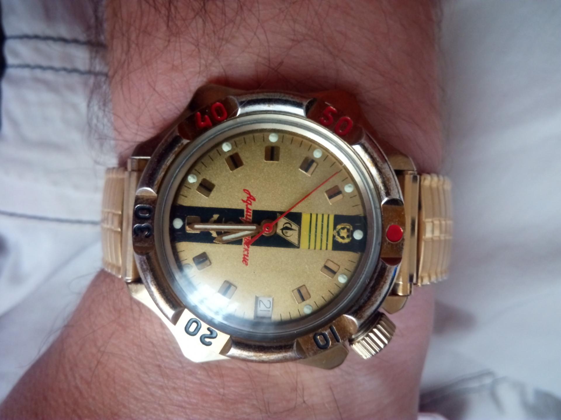 Сат о коме је већ било много речи, Амфибија, модел кућишта 710, редизајнирана " министарка", аутоматик механизам 2416Б. Циферблат чак и лепши него онај који сам видео кад сам га наручивао, мало је рећи да уживам у њему. Мислим да му одлично " чучи" метална наруквица, иако сам му купио нато каиш, тако да, нека је ова Востокова док не нађем неку бољу. Још мало слика: