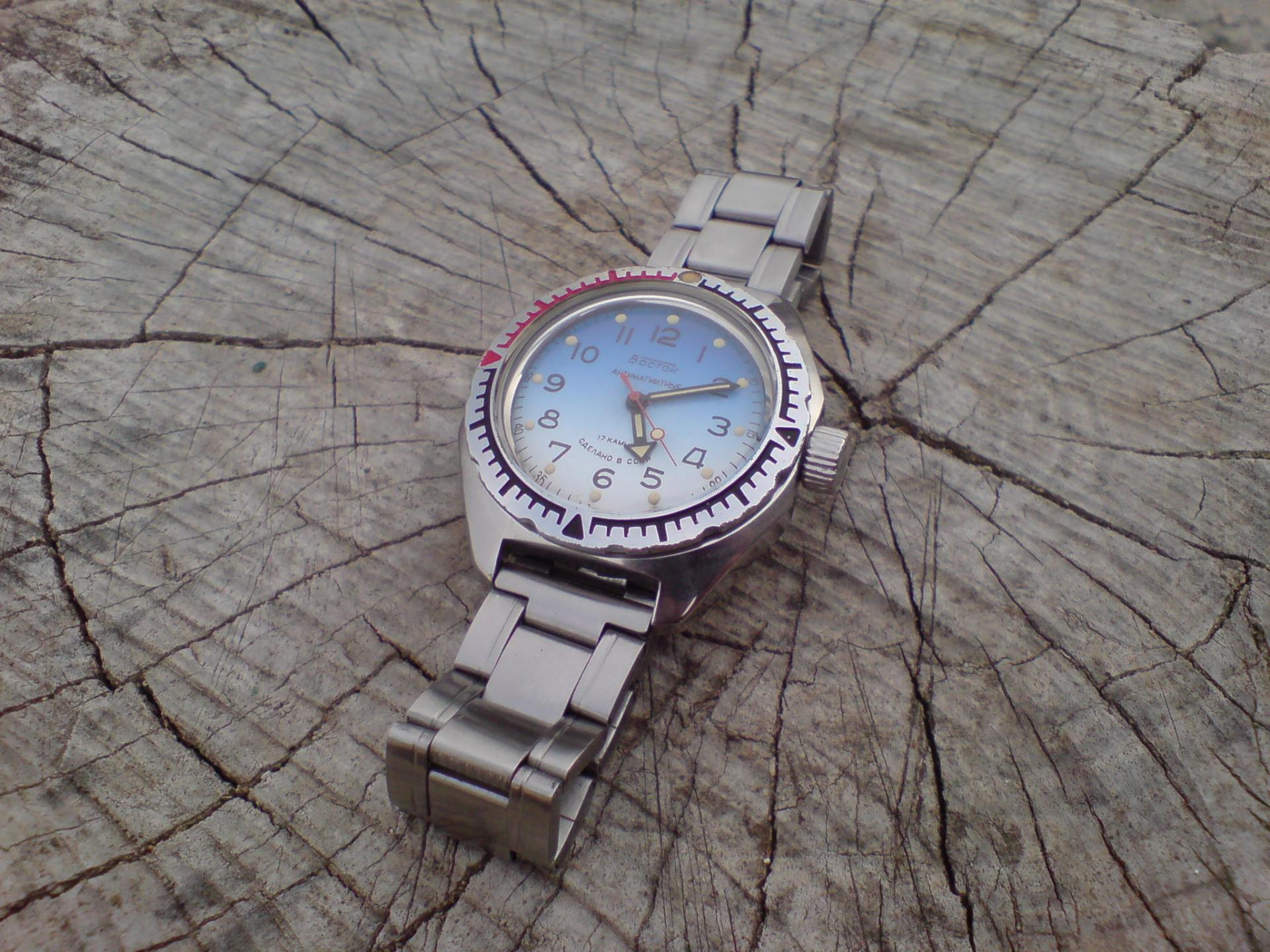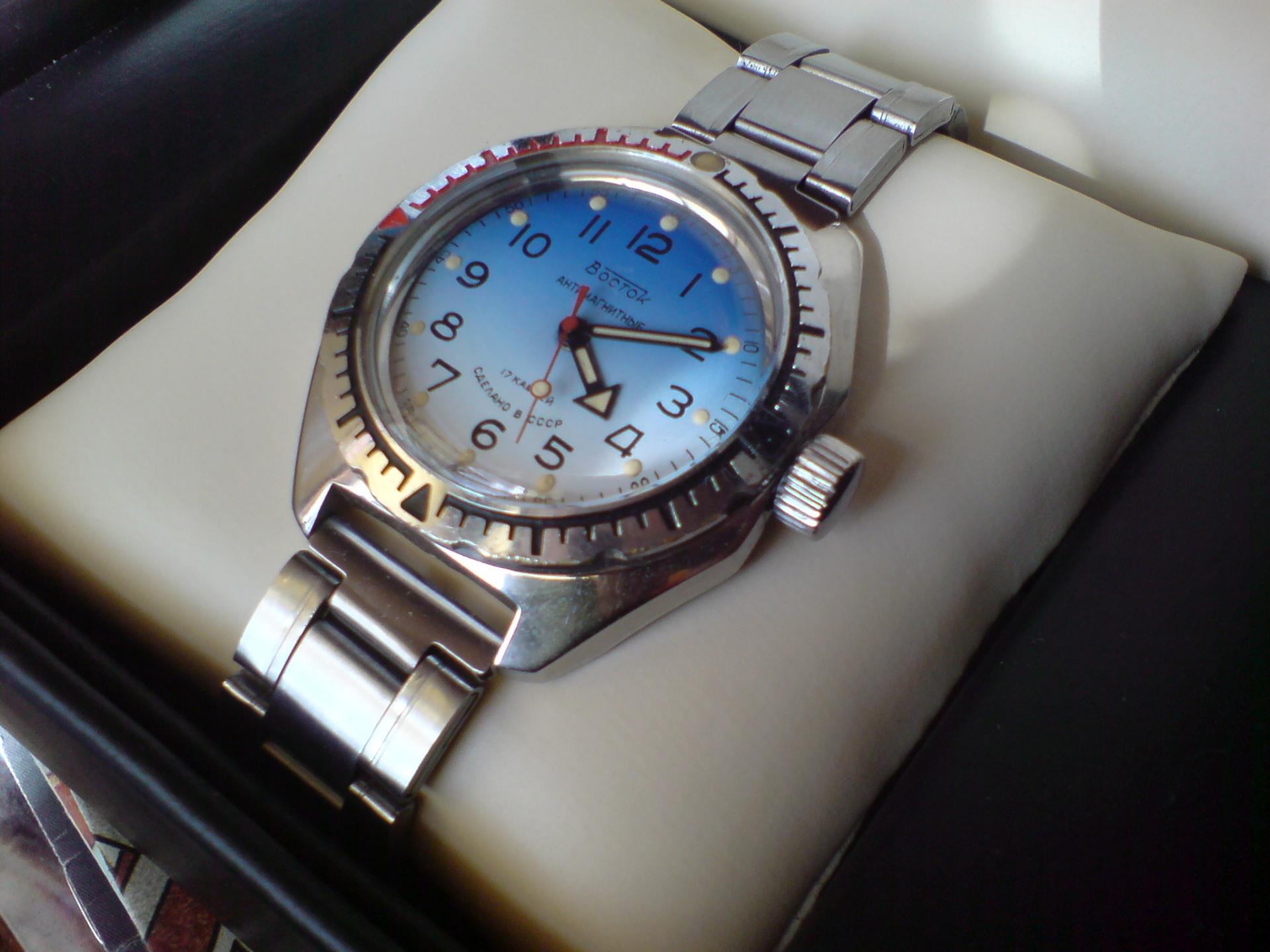 Sat koji na mene ostavlja poseban utisak je AMFIBIJA,sva u čeliku,osmougaono kućište,mehanizam 2414 sa 17 rubina.Sat je prošao majstorsku ruku našeg prijatelja(BAJKER71) kome se posebno zahvaljujem.Smatram da je ovo prvi ozbiljniji sat iz SSSR-a,cenim lepotu i kvalitet ovog sata.