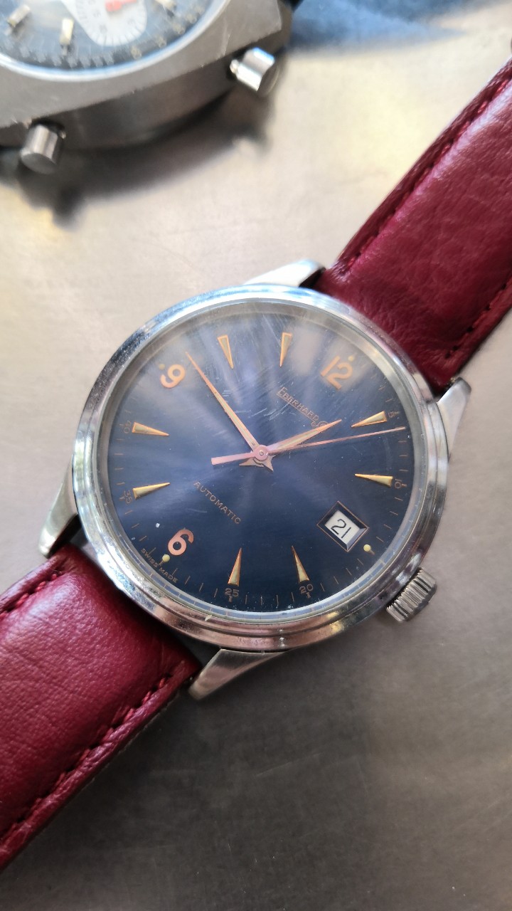 Dobio sam ga kao veoma drag poklon pre nekoliko meseci, bio je na neoriginalnoj narukvici, sad je na crnoj rally koži i maltene ga ne skidam sa ruke. Sekundara je čačkana kod nekog od prethodnih vlasnika i nije baš najsrećnije ofarbana (u drugoj je nijansi žute), te me to čeka u skorijoj budućnosti i sat bi mogao biti precizniji na 24h, ali sam osim toga prezadovoljan.
