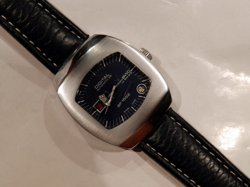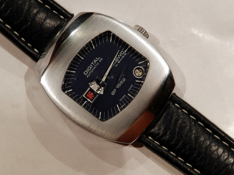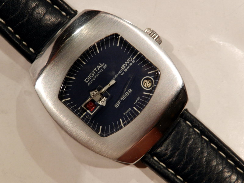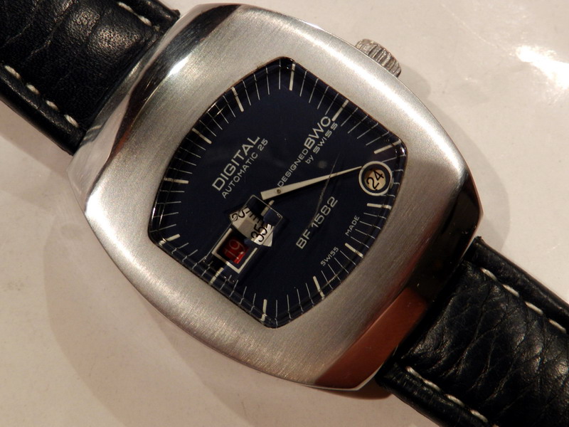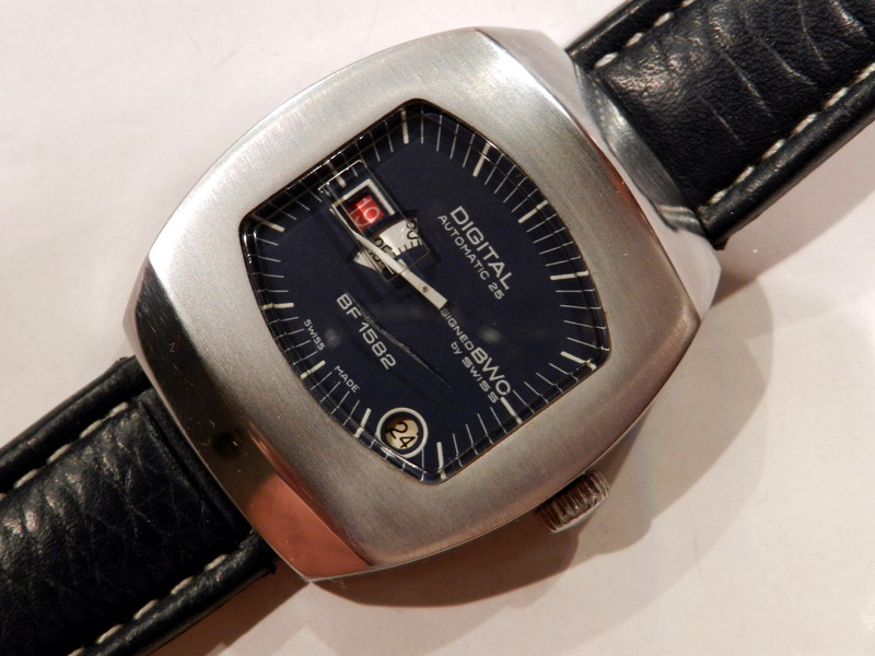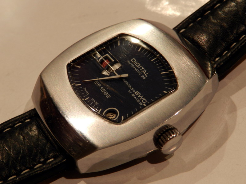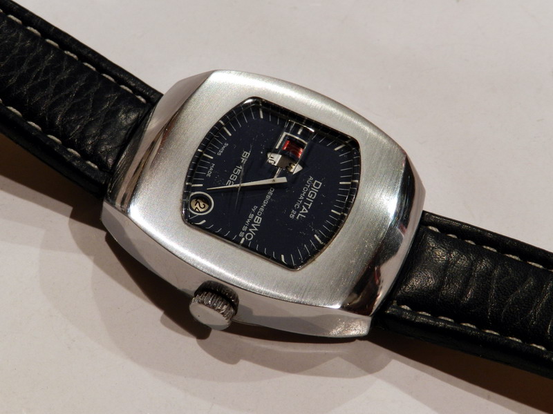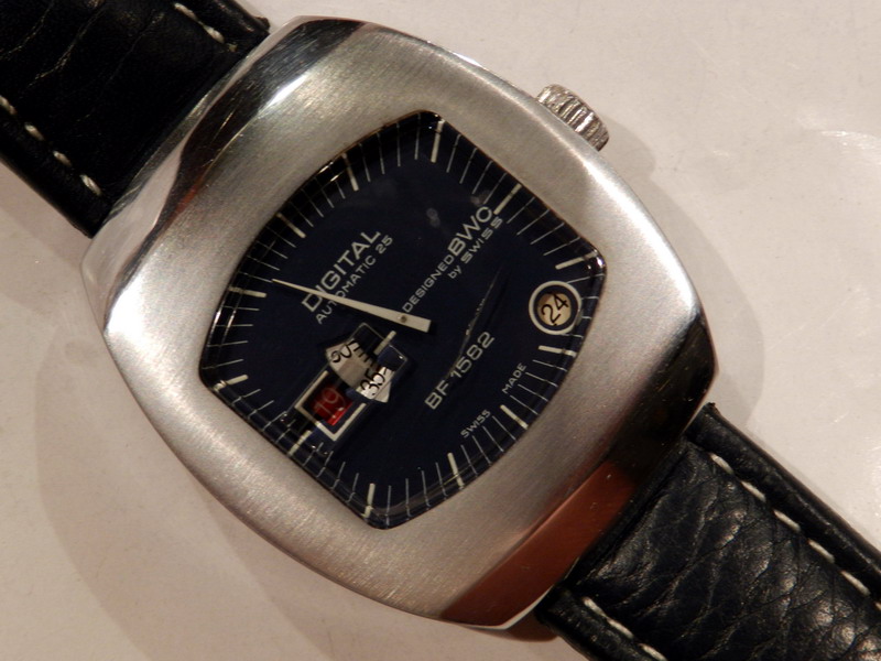 Antiquorum - Digital Automatic 25, Designed BWC by Swiss, BF 1582. Produced in the 1970's.Interesting jump hour, center-seconds, self-winding, "carré galbé", stainless steel gentleman's wristwatchwith date.