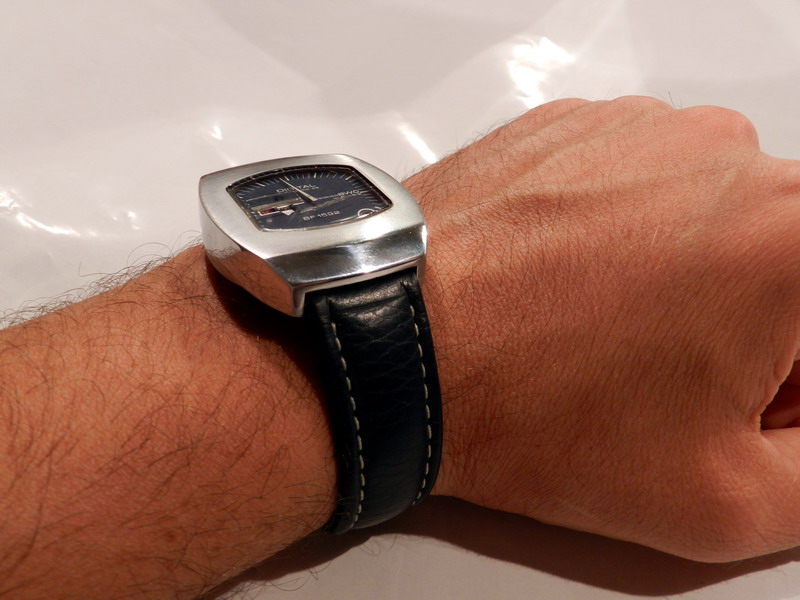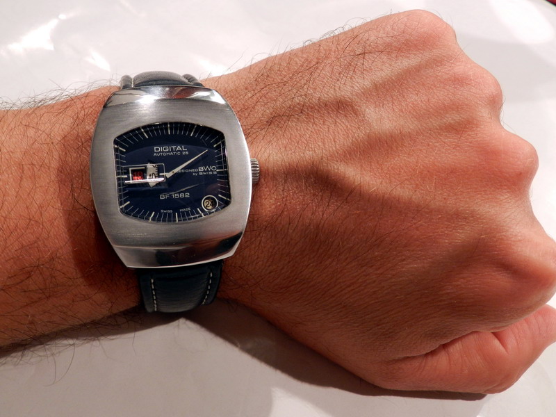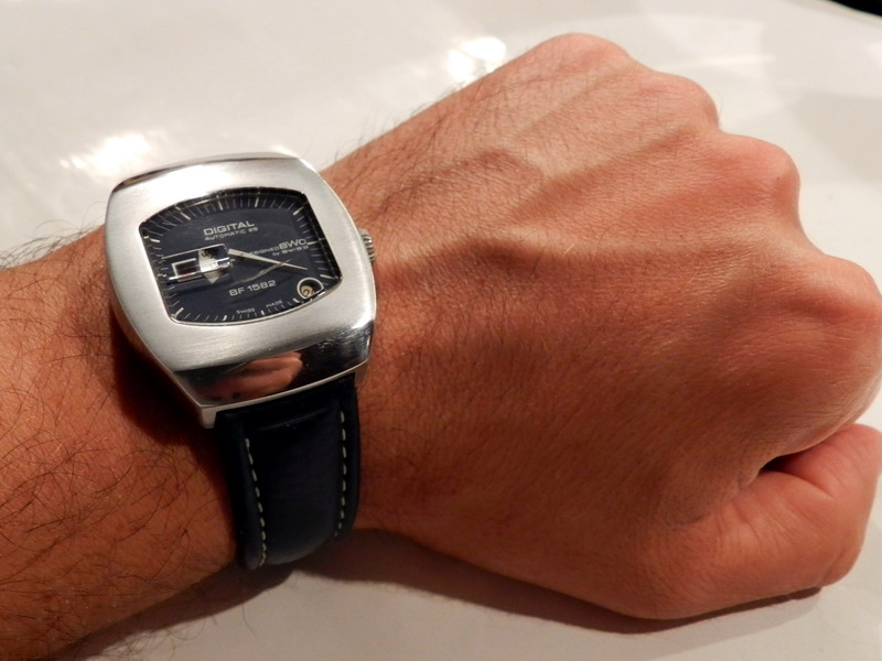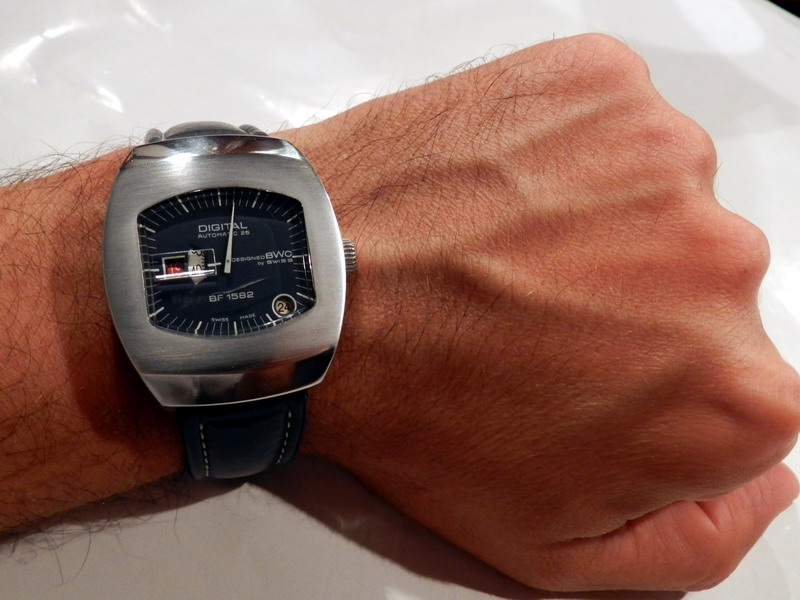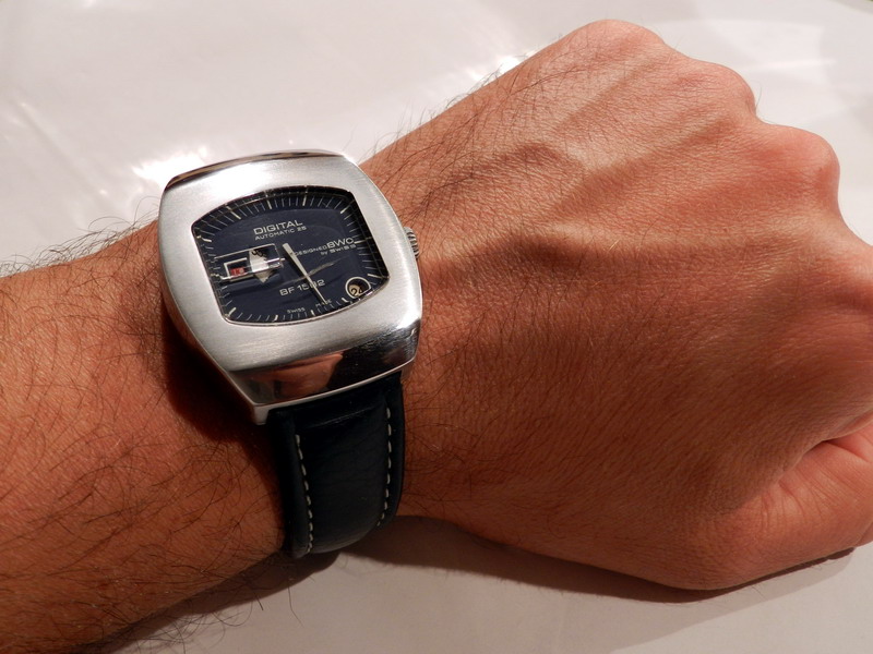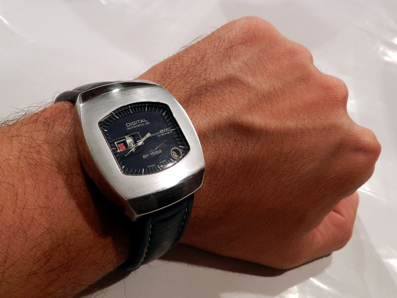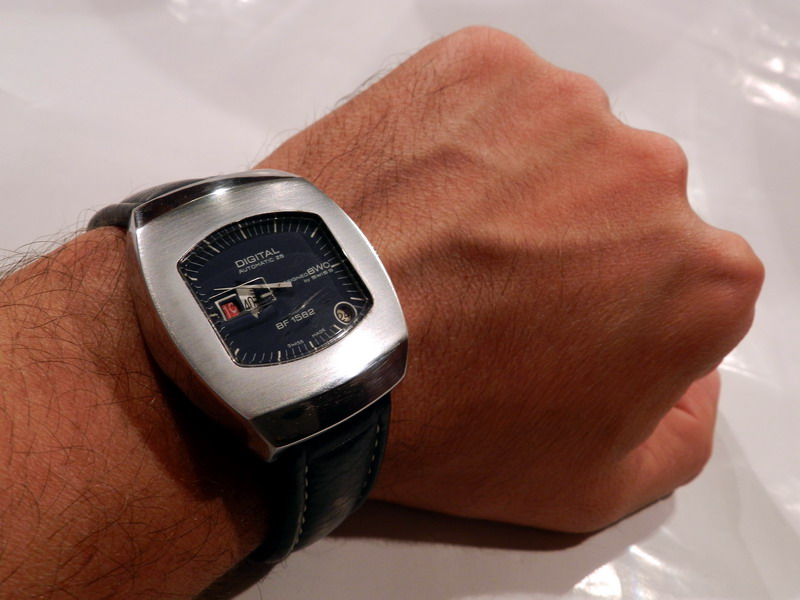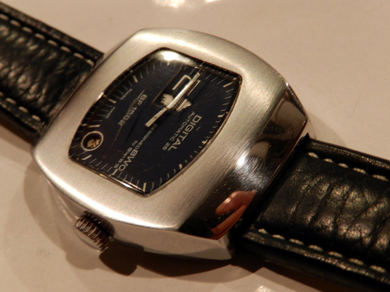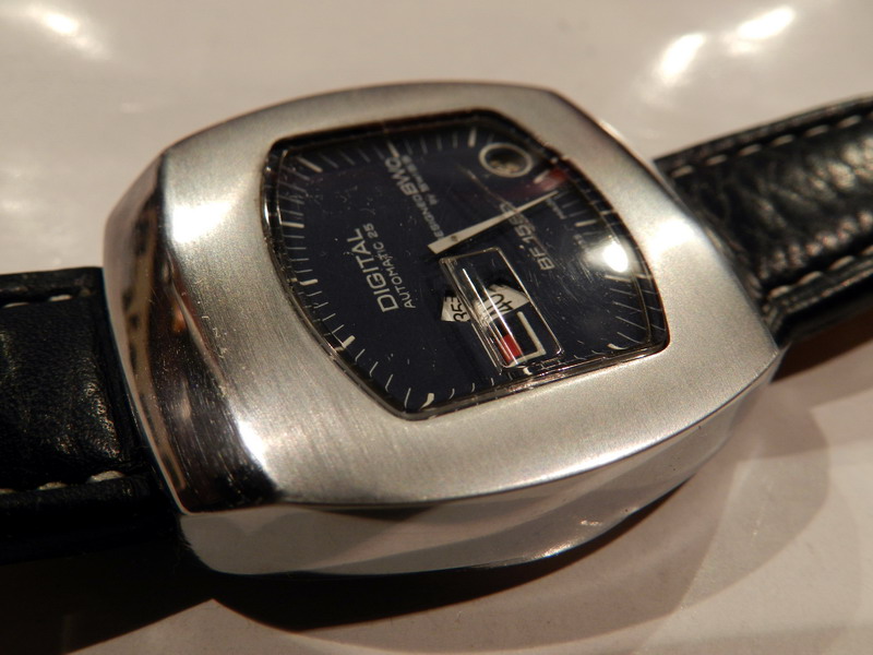Antiquorum - Digital Automatic 25, Designed BWC by Swiss, BF 1582. Produced in the 1970's.Interesting jump hour, center-seconds, self-winding, "carré galbé", stainless steel gentleman's wristwatchwith date.