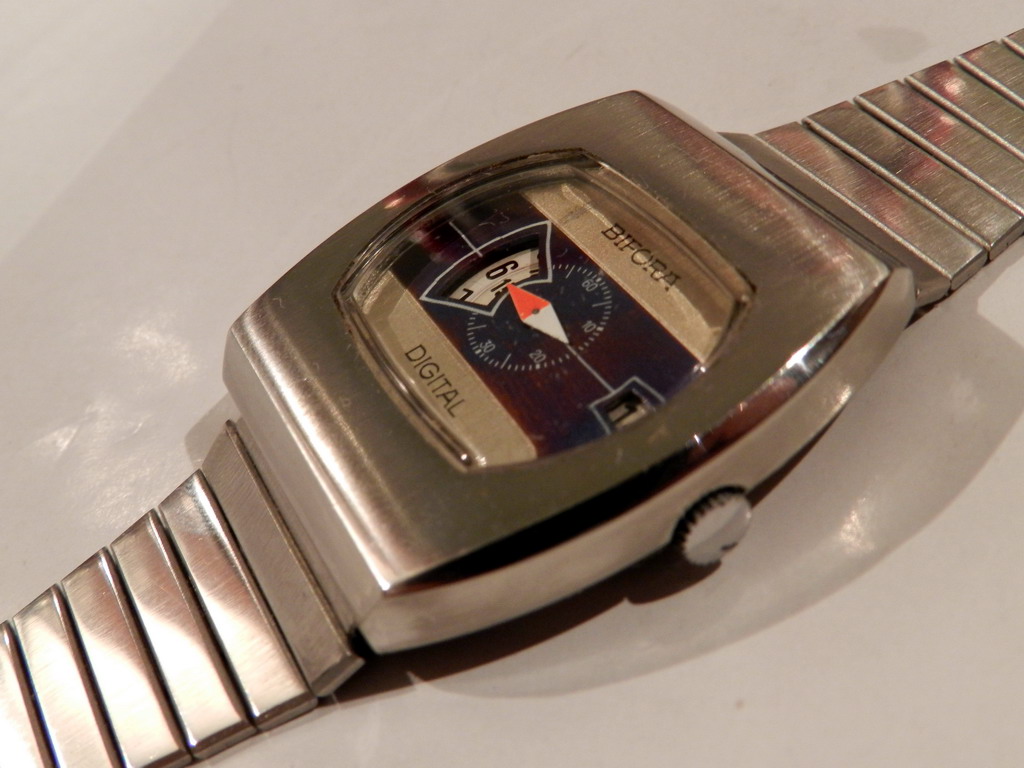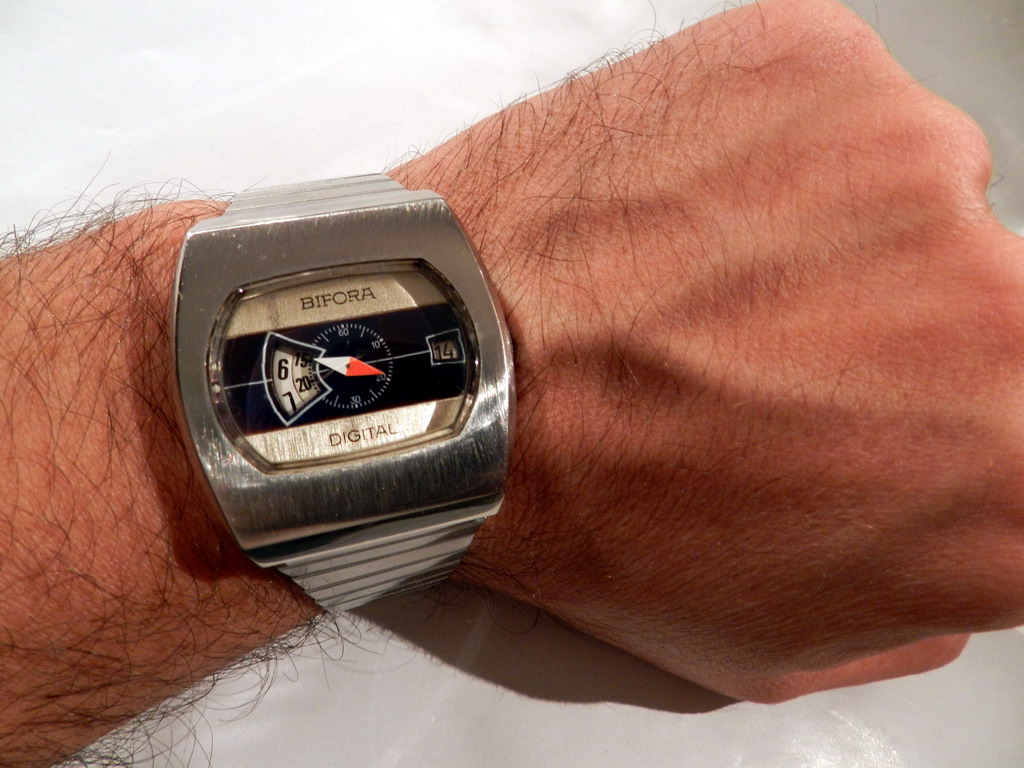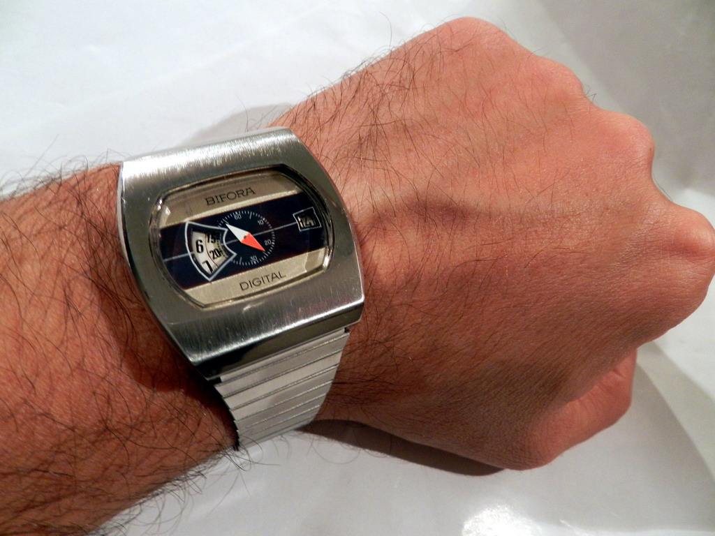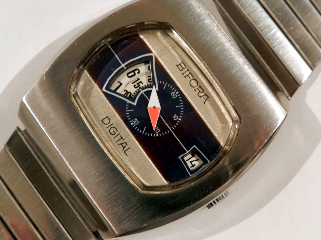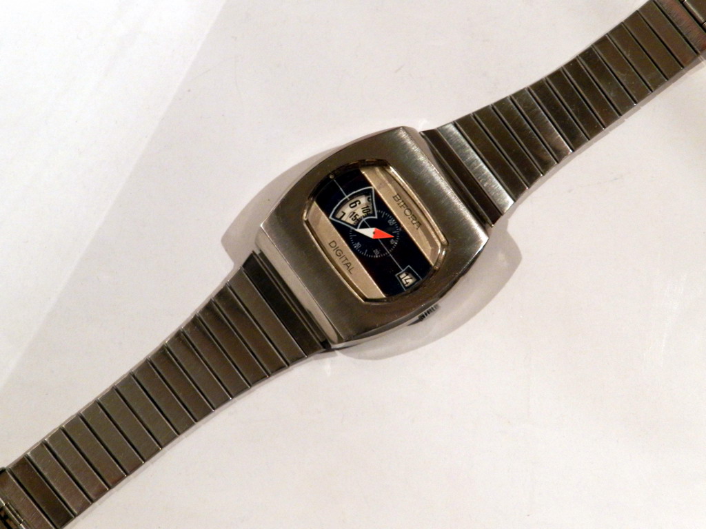 jos jedan analogni digitalac koji se retko vidja , BIFORA proprller , datira sa kraja 60-tih i nespada u grupu Jump Hour satova vec u Direct-Read satove, pokrece ga bifora115-tacnije ova: