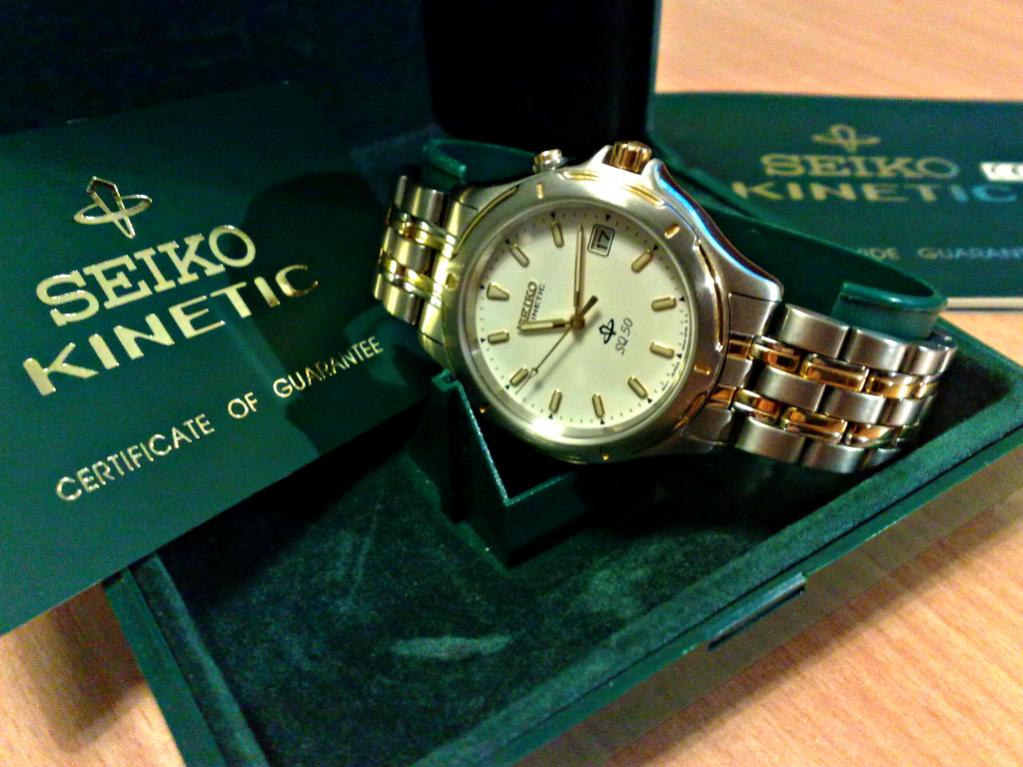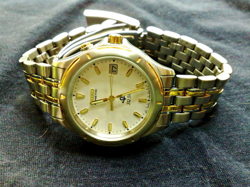 Moj prvi sat koji sam dobio od deda za 15. rodjendan,za sada ga retko nosim u pitanju je Seiko Kinetic SQ 50 :)