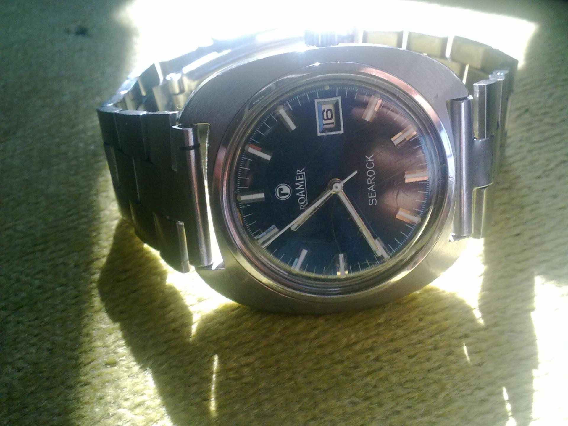 Danas konacno podigoh sat sa opravke i servisa. Radi se o Roamer searock, modelu sa in-house mehanizmom MST 430 date i 17 rubina.Novajlija me kostao vise nego sto sam planirao(znate vec) ali nisam hteo da odustanem. Moj prelepi,prekrasni jbg poceo sam kao Golum(satitis)