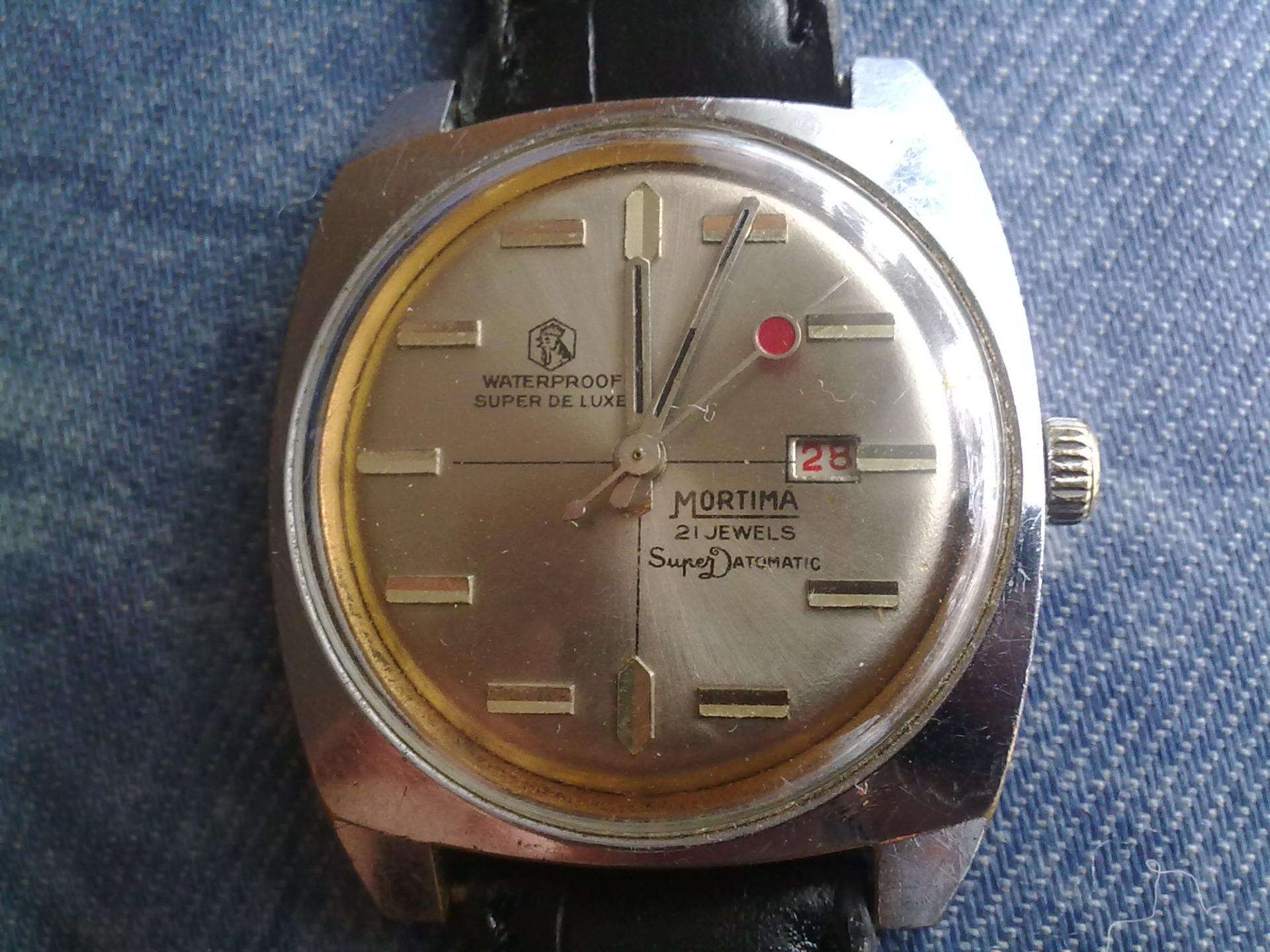 Konacno Mortima u kolekciji.Kada su me rodjaci ispalili za rodjendan ajde da ja sam sebe obradujem :dance3:. Sat je u dosta dobrom stanju a u pitanju je model super datomatic sa 21 draguljom i mehanizmom Cattin C-66. Sat je kupljen sa celicnom narukvicom ali posto je zahladnelo nabacio sam mu kozu. Prilog 75717