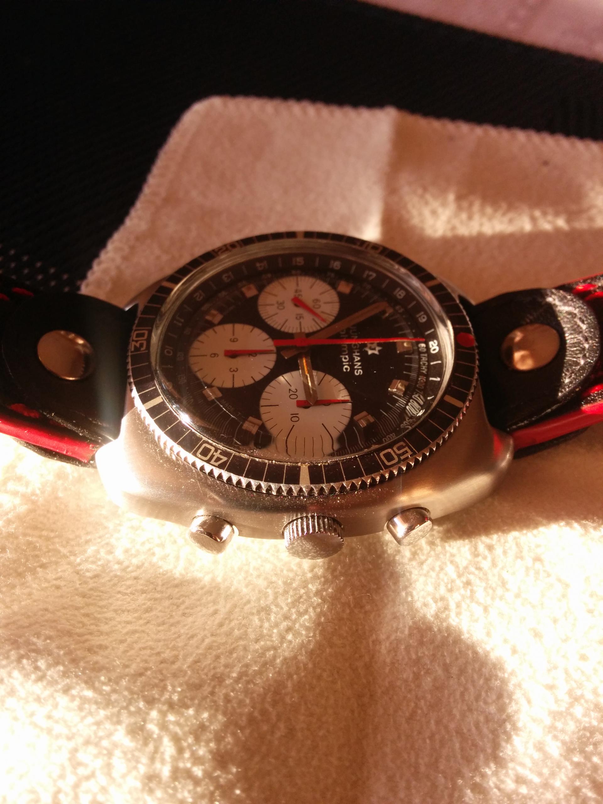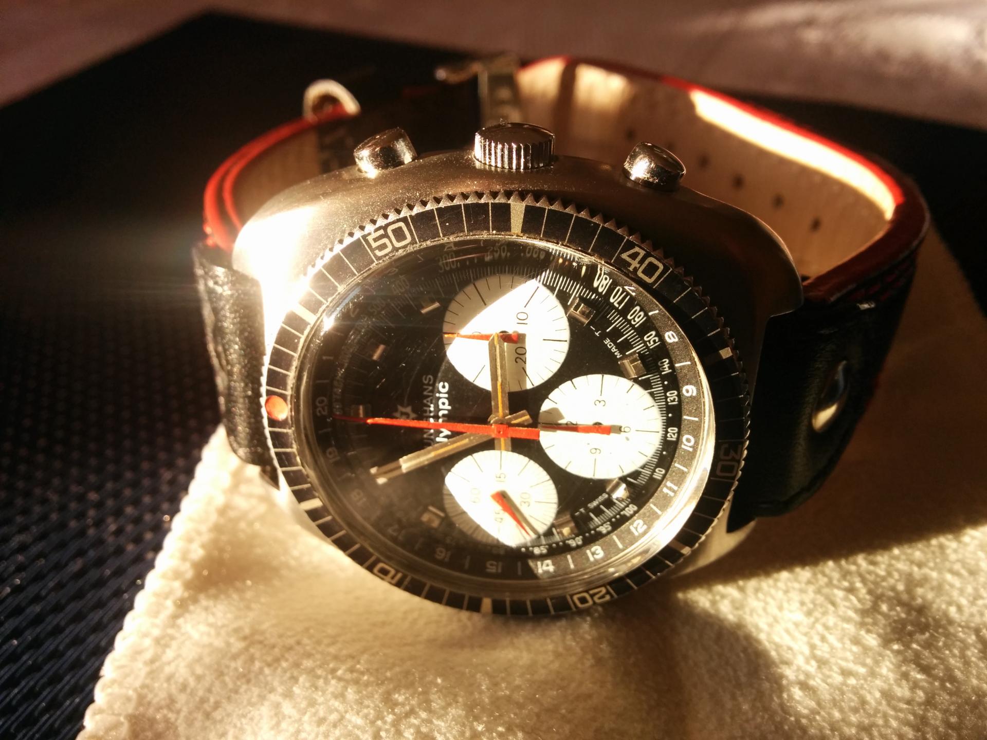 Meni, izuzetno lepi, vintazni sat sa Valjoux 7736 mehanizmom. Sat je napravljen u cast olimpijskih igara u Minhenu, 1972. godine. Odatle i naziv, Olympic.