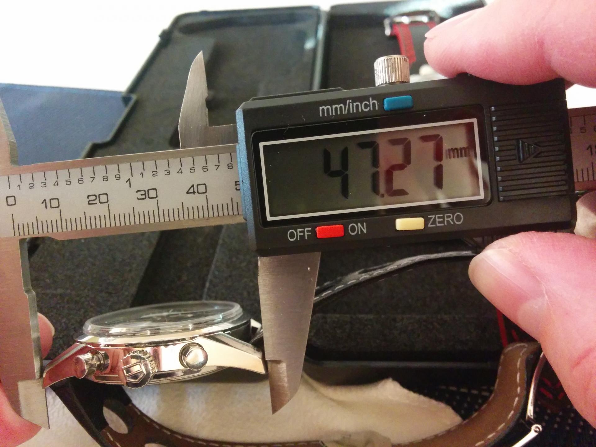 Sat je 44mm sirok, ukljucujuci i krunicu i 46,5mm, lug to lug.