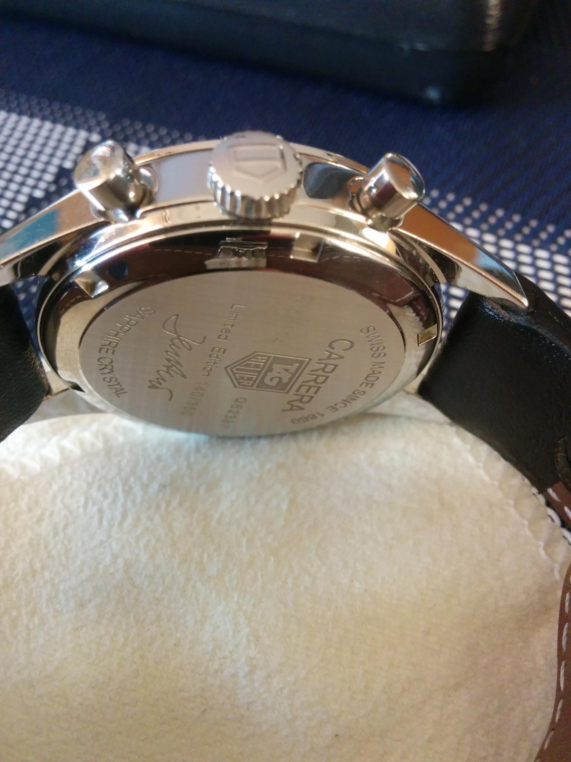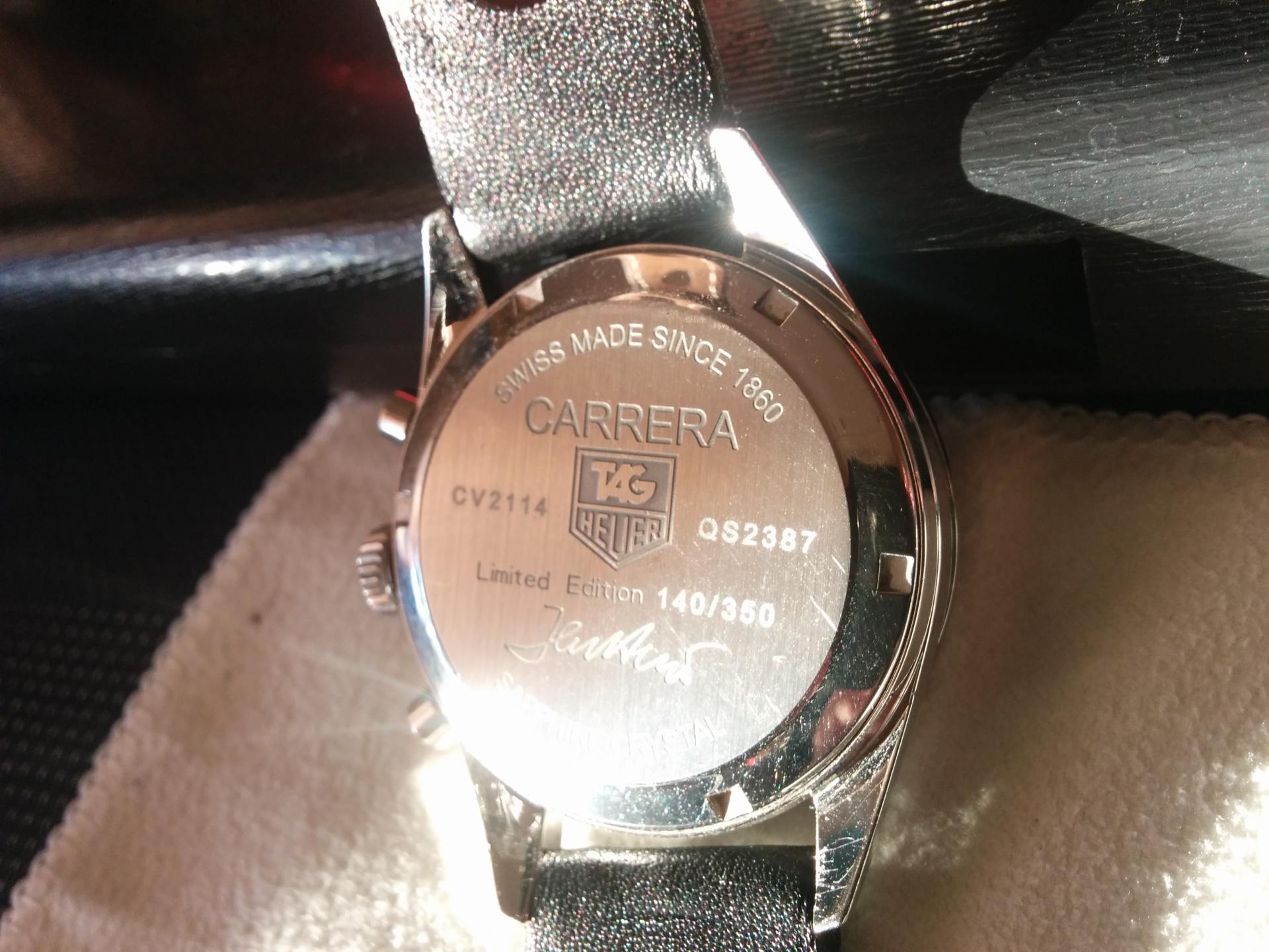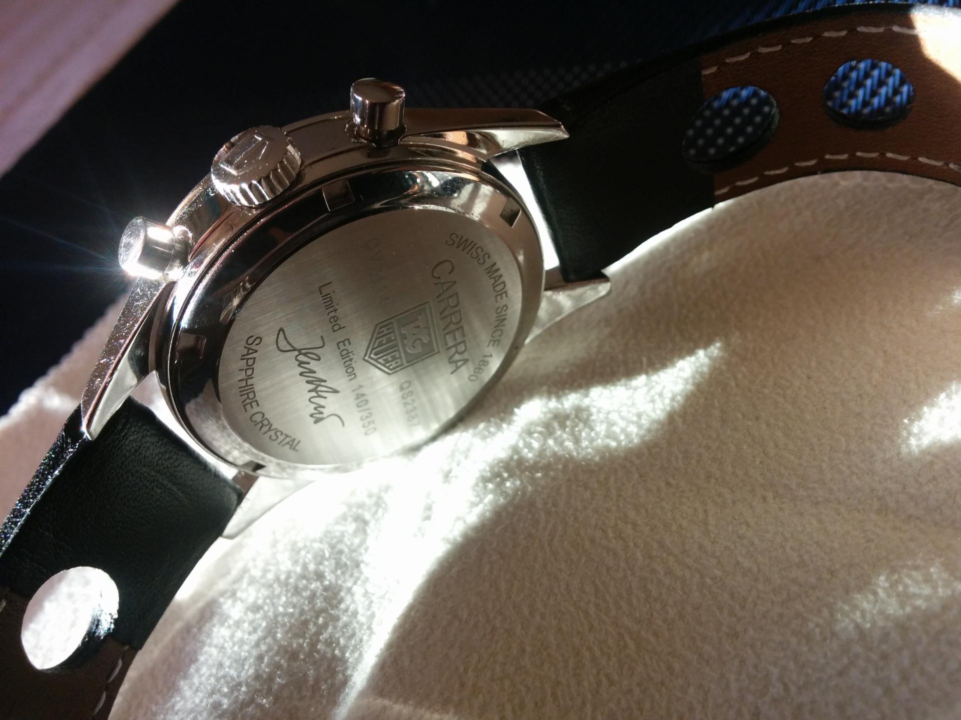 Zadnji poklopac je lepo uradjen, uobicajena info o ref broju ali i limited edition natpis sa podpicom gospodina Heuera.