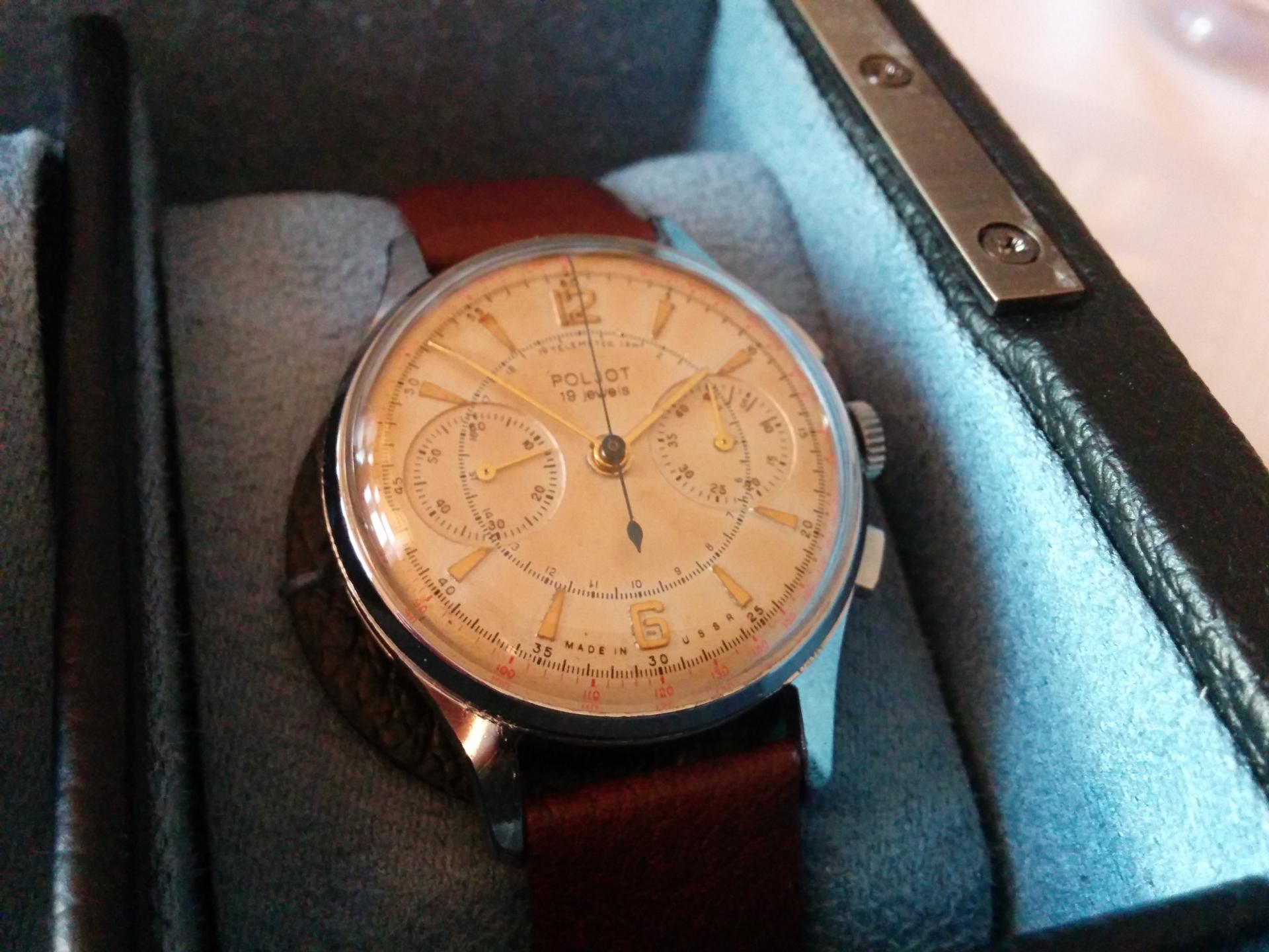 Kuciste je biko polirano, sto meni licno ne smeta i jastucastog je oblika, sto je opet karakterno za satove iz tog vremena. Sat ima rezervu snage od 56 sati, to sam proverio! Ukratko, za mene predivan sat, mog omiljenog oblika kucista, sat sa istorijom i kvalitetnim mehanizmom.Jos malo fotografija!