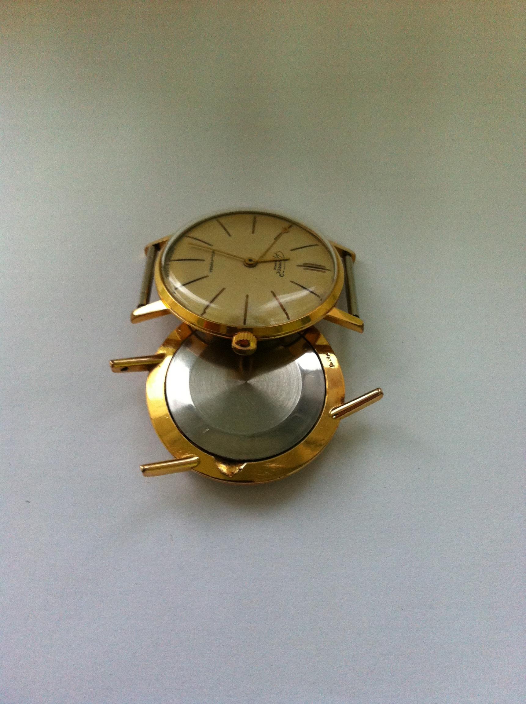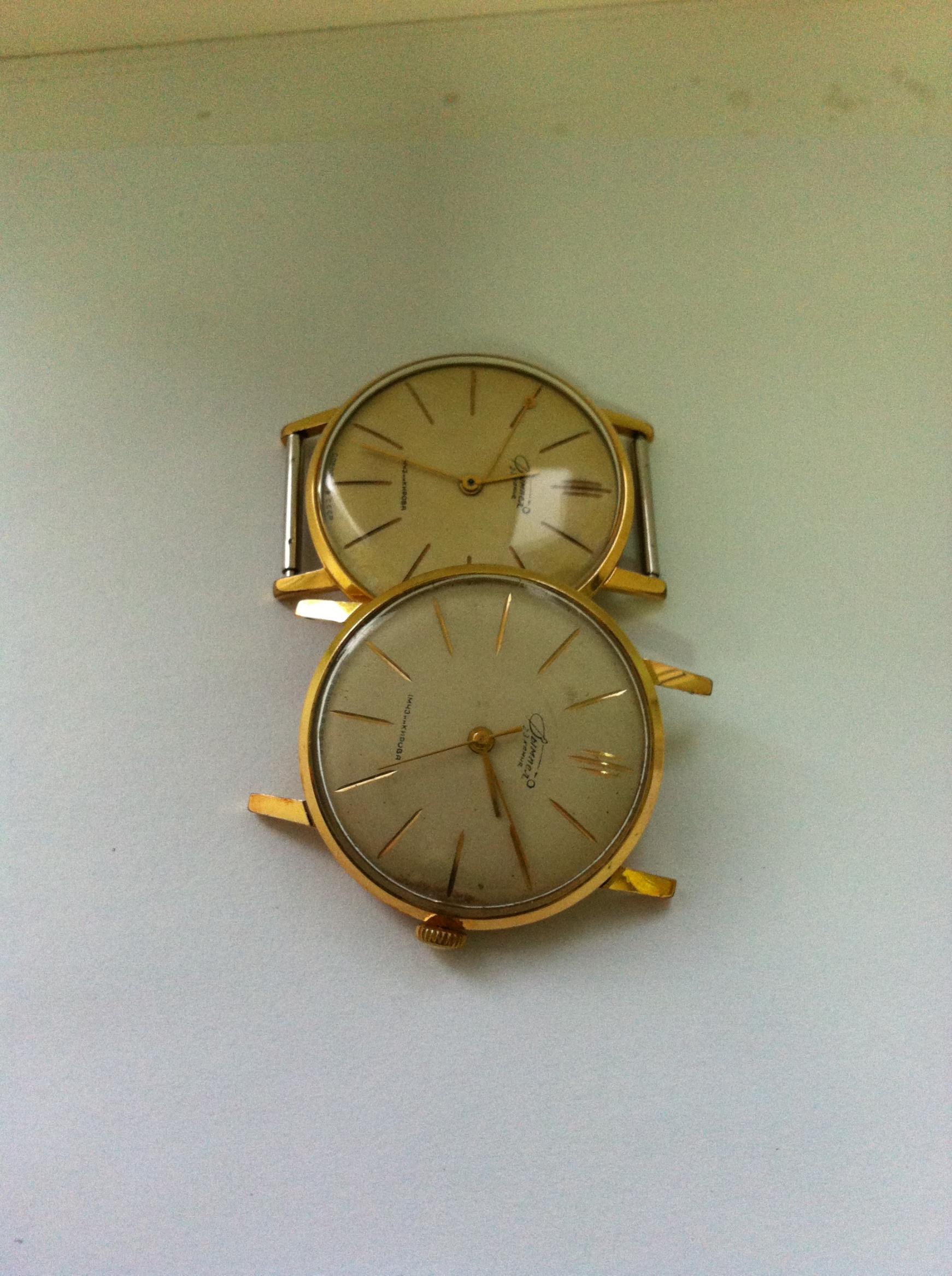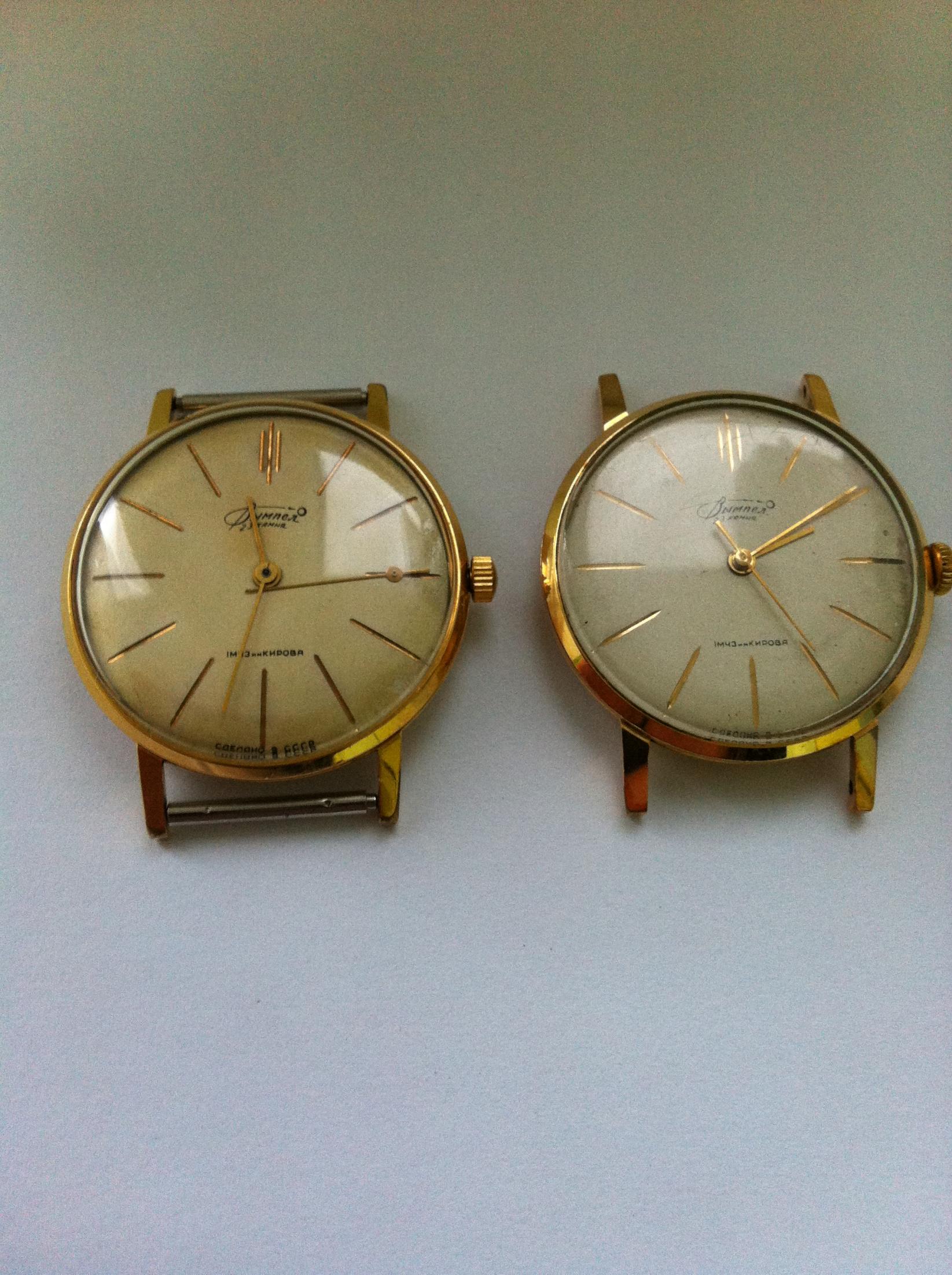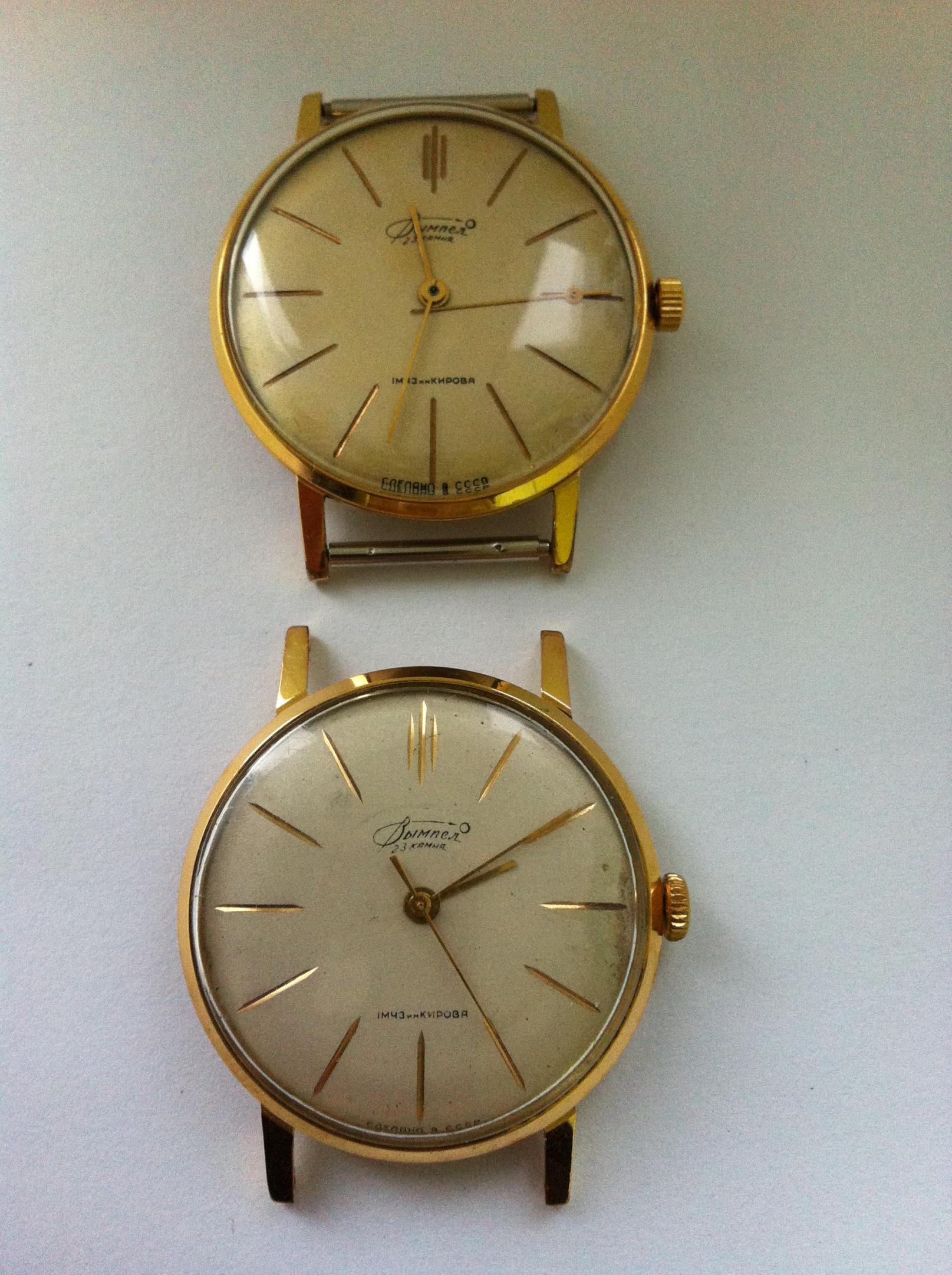 Vimpel, sat koji je bio nagradjivan, negde 1963. godine u Lajpcigu. Izuzetno tanak i elegantan!!! Ko voli "zute" satove, prava stvar!!!Oba rade, jedino je mali problem ciferblat kod jednog. Verovatno cemo od dva sklapati jedan. To nece biti problem zato sto su sve orginalni delovi! Mislim da sam negde nasao informaciju da je ovaj mehanizam bio premerak za neke Zenith satove.