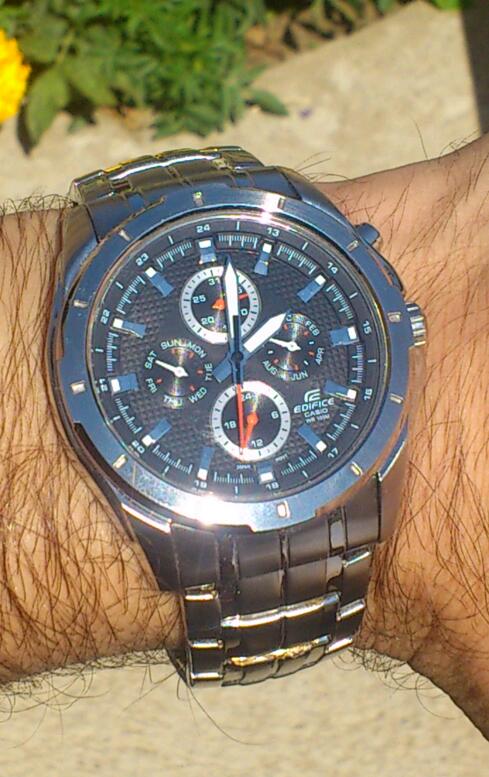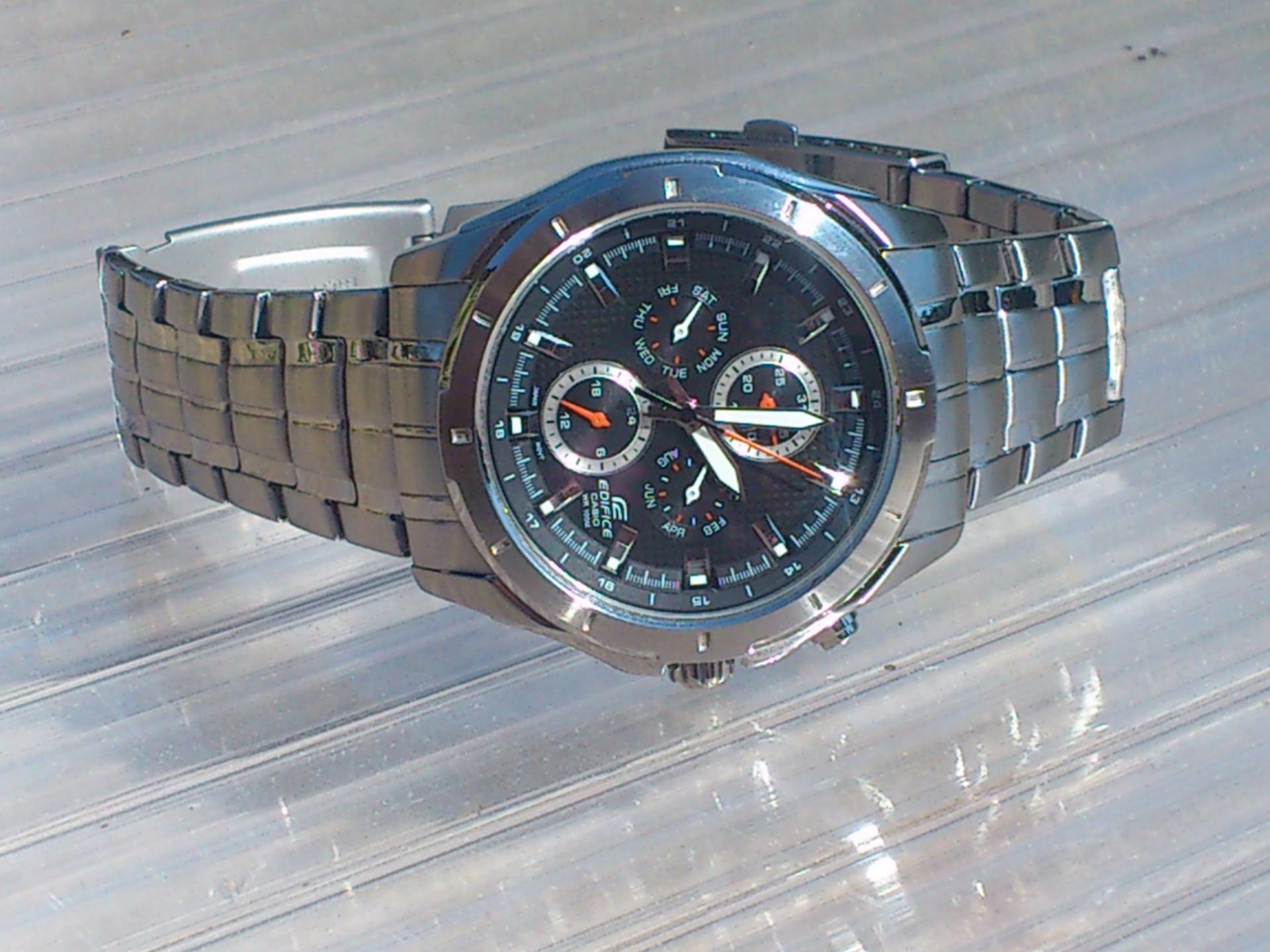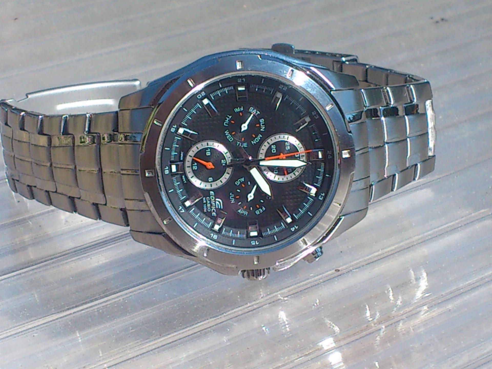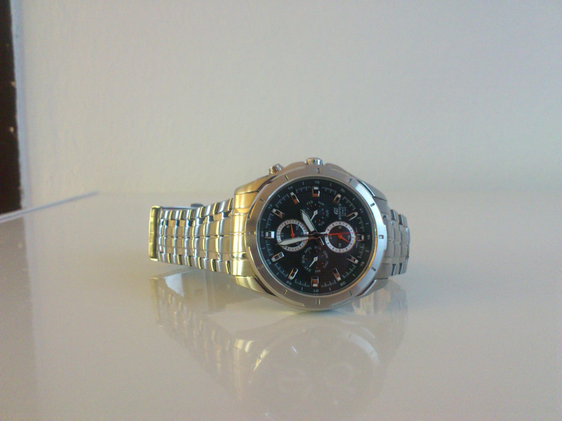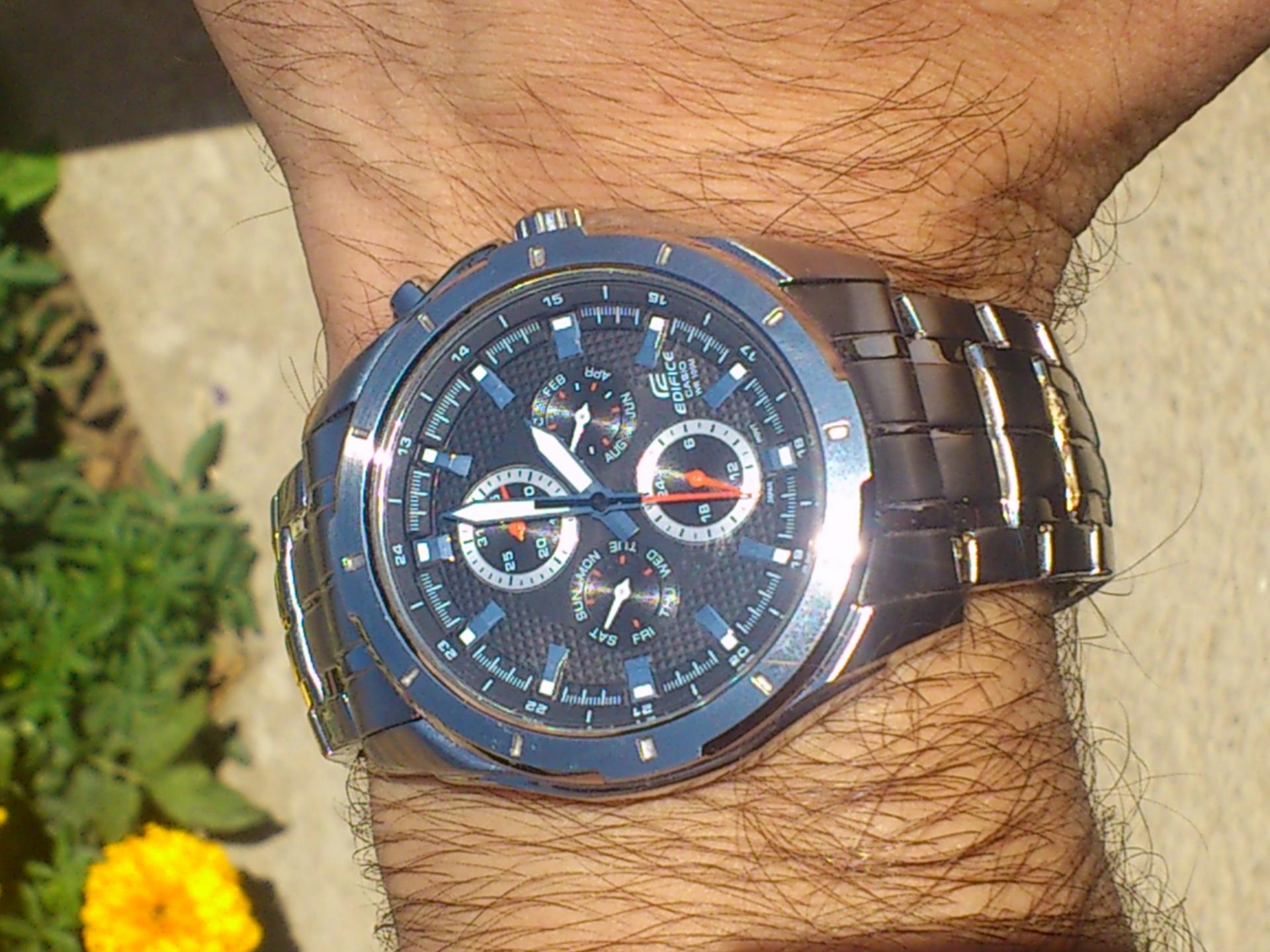 Evo da predstavim i ja jednog od svoja dva ljubimca.. Rec je o CASIU EF-328D-1AVEF. Sat je kupljen pre mesec ipo dana ali sam resio da ga tek sada uslikam. Neke karakteristike sata su; tezina 142 g, obim 44,80mm,bruseni celik, vodootpornost 100m, sa danom, datumom, mesecom i pm. jako mi se svidja ova kombinacija crnog cifera sa crvenim kazaljkama . Sat je veoma lak za ocitavanje jer su i same kazaljke krupnije pa to znacajno olaksava citanje. luminacija je takodje odlicna,po meni, s tim sto nisam mogao da uslikam i to da vam pokazem jer mi i nije bas dobra kamera na telefonu. . evo i sajta o njemu pa pogledajte karakteristike i tu: Line Up- EDIFICE
