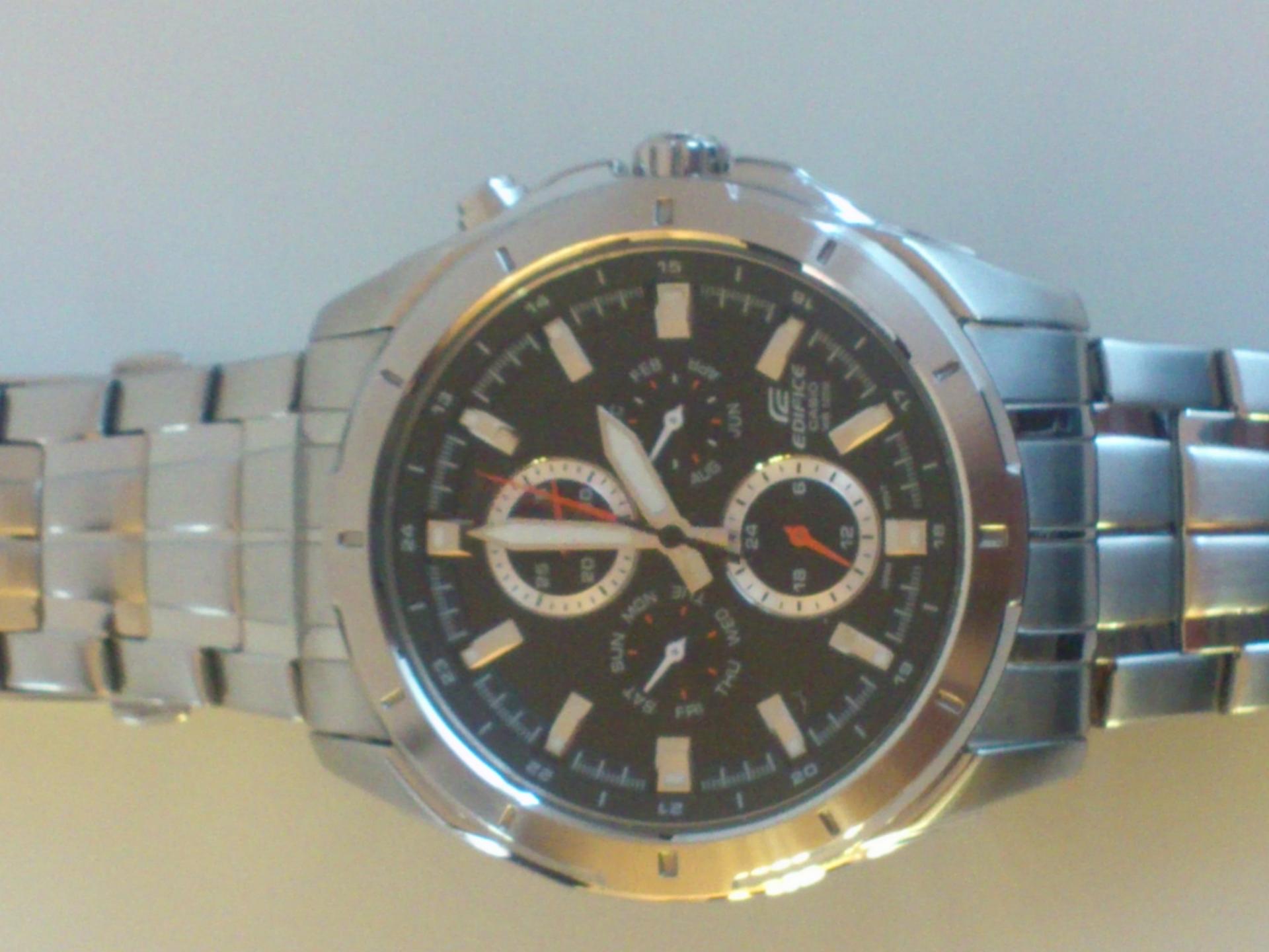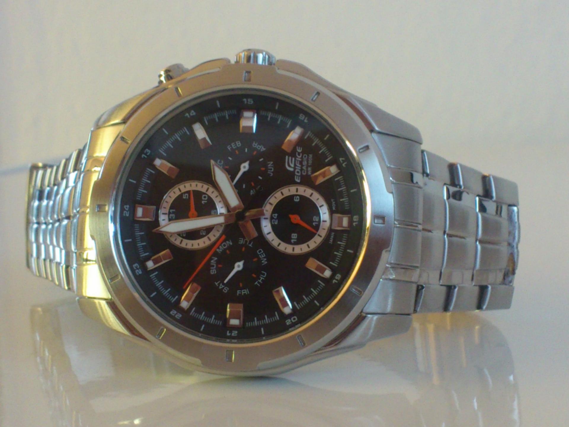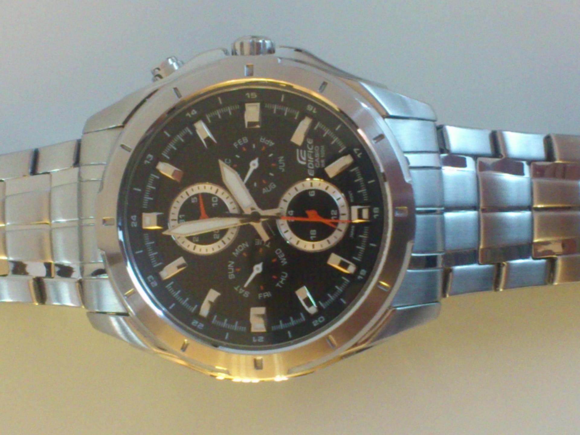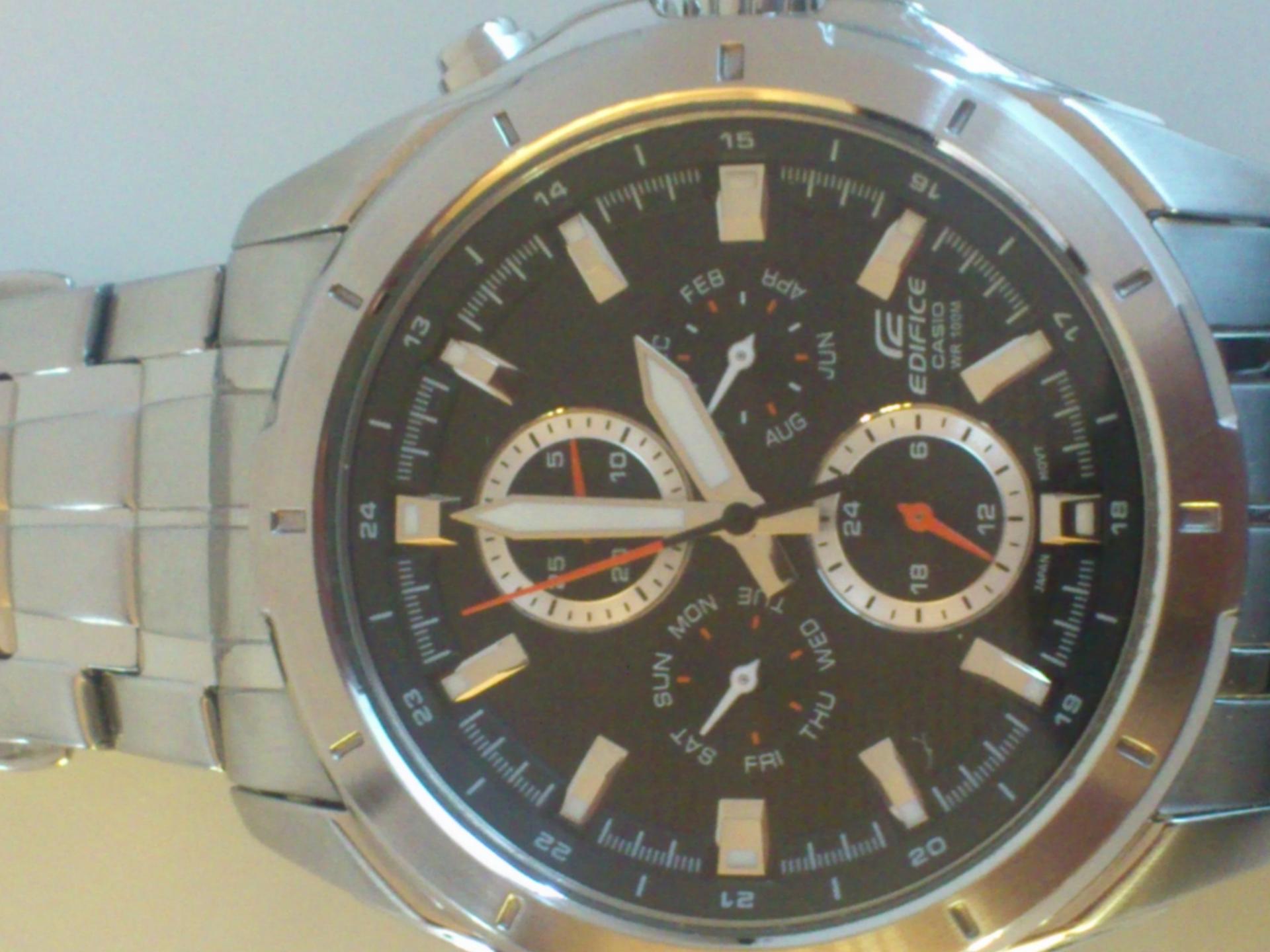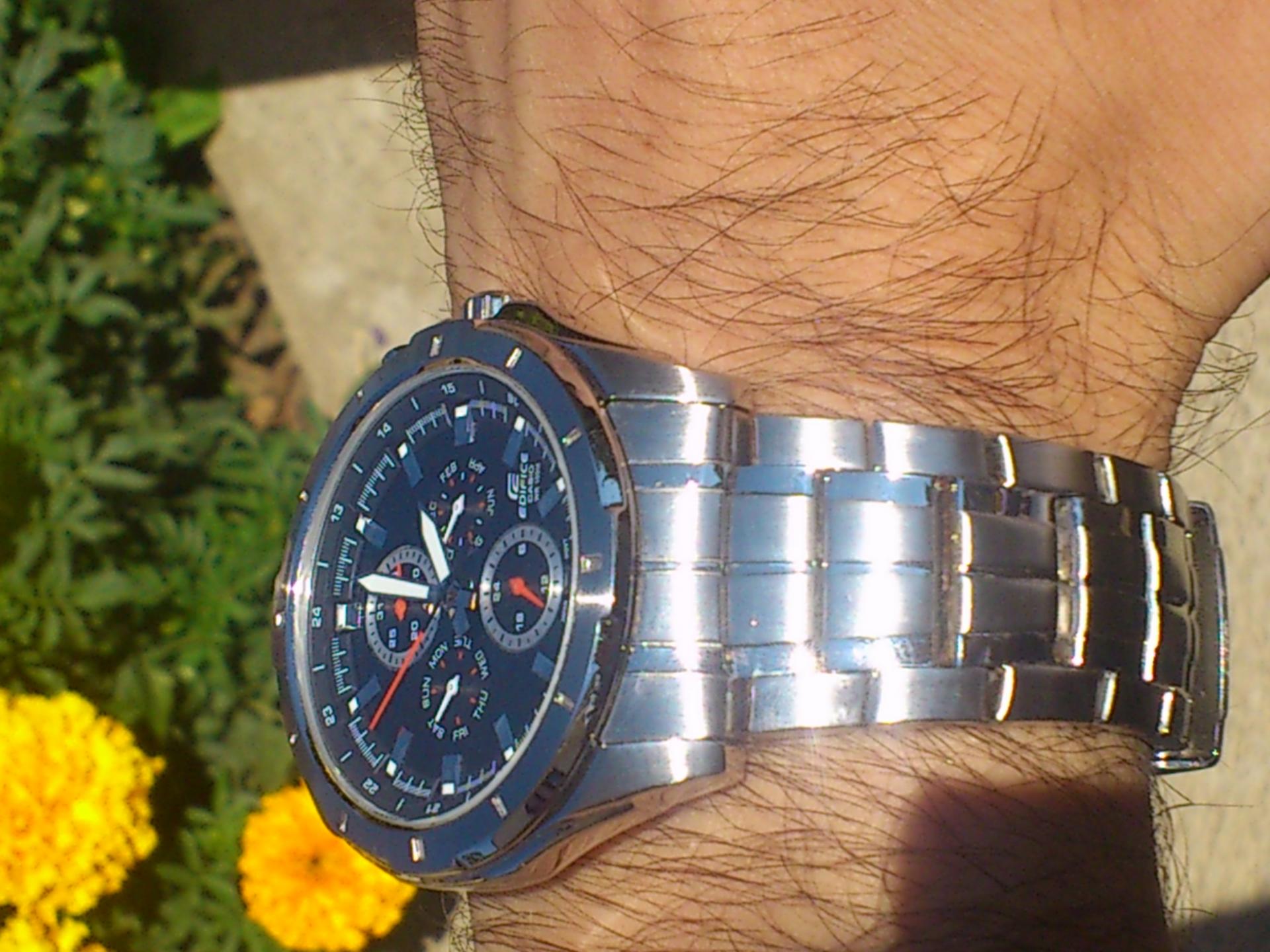 Evo da predstavim i ja jednog od svoja dva ljubimca.. Rec je o CASIU EF-328D-1AVEF. Sat je kupljen pre mesec ipo dana ali sam resio da ga tek sada uslikam. Neke karakteristike sata su; tezina 142 g, obim 44,80mm,bruseni celik, vodootpornost 100m, sa danom, datumom, mesecom i pm. jako mi se svidja ova kombinacija crnog cifera sa crvenim kazaljkama . Sat je veoma lak za ocitavanje jer su i same kazaljke krupnije pa to znacajno olaksava citanje. luminacija je takodje odlicna,po meni, s tim sto nisam mogao da uslikam i to da vam pokazem jer mi i nije bas dobra kamera na telefonu. . evo i sajta o njemu pa pogledajte karakteristike i tu: Line Up- EDIFICE