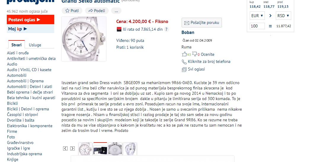 Ovo je kp stranica na kojoj se prodaje doticni sat