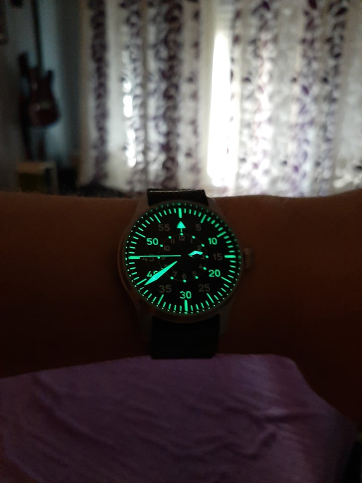 Ono sto mi nije bilo super ovako na prvu - kozni flieger kais se stilski uklapa uz sat, ali se slabije uklapa uz ono sto obicno nosim. Pogotovo braon. Uzeo sam i braon i crni flieger kais i ok su, nosicu ih ponekad, ali mislim da ce ipak najvise da zivi na nato i canvas narukvicama. Na slikama je Vario twill zeleni nato koji odlicno ide. Stigao mi je danas i takav slican od CNS koji je crno/plavi, to bi trebalo da ide odlicno uz brojcanik i plave kazaljke. Druga stvar koja bi mogla da bude bolja...pre su pakovali sat u metalne kutije, a sada su presli na medijapan koji je samo grubo obradjen, bez ikakve zavrsne obrade, boje ili presvlake. Verovatno je neka nemacka eko-friendly fora da pokazu kako je reciklirano, ali to bi moglo bolje.