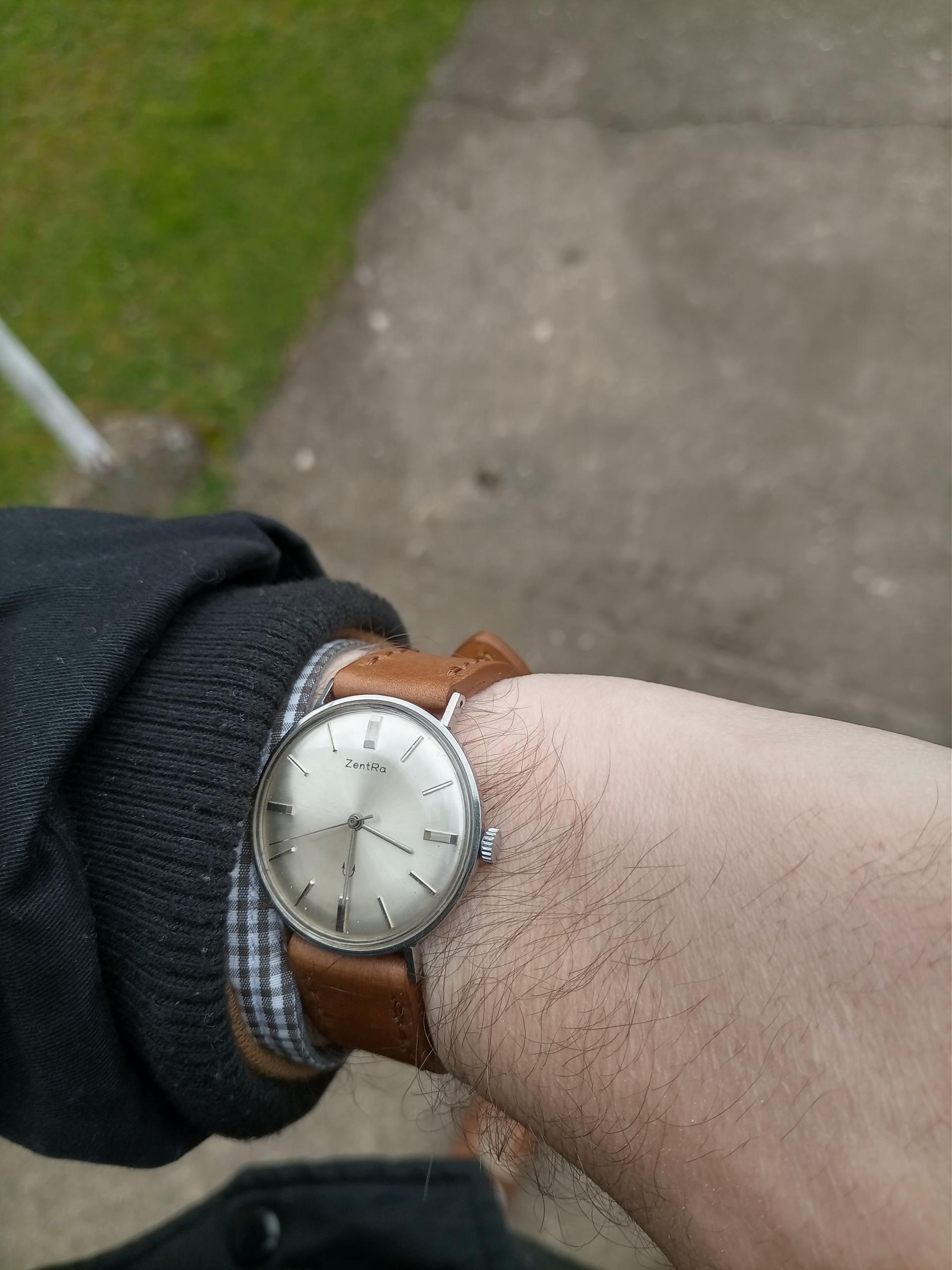 Kako su ono govorili reklamni posteri, " sat sa potvrdom zrelosti" . :D Zentra Neptun iz 1960i ih godina. Jednodelno kućište od nerđajućeg čelika, sat se otvara preko stakla. Nisam siguran šta je unutra. Po onome što sam našao na netu može biti PUW 460, PUW 560 ili ETA 2390.