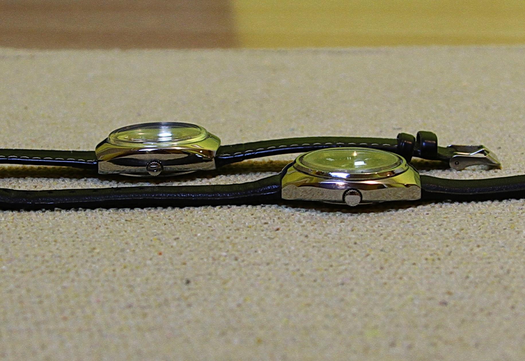 Evo jos jedan usporedni prikaz dva starovremenska sata. A odlucio sam se na to zbog slicnog oblika kucista. Takozvano jastucasto kuciste ali ipak u bocnom pogledu prilicno razlicito.
