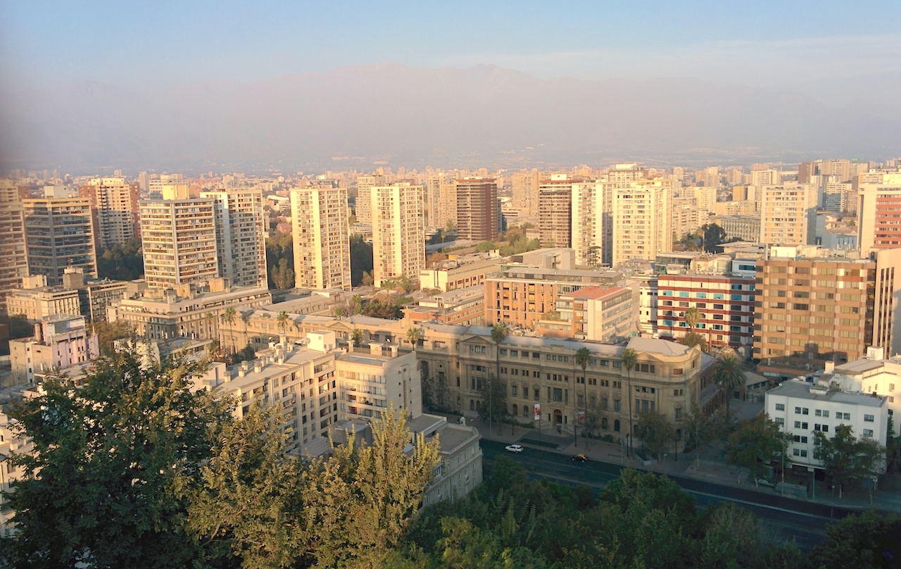 Andi se ne vide, jer je vazdug "čist". Santiago je grad od oko 7 mil stanovnika, ali se nalazi u kotlini pa smog nema gde da ode. Dalje se vidi jedino posle kiše.