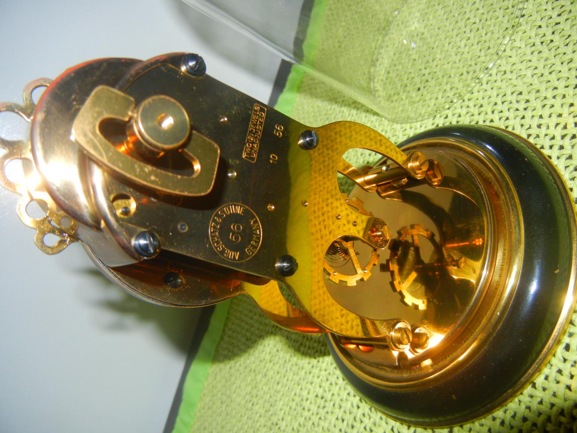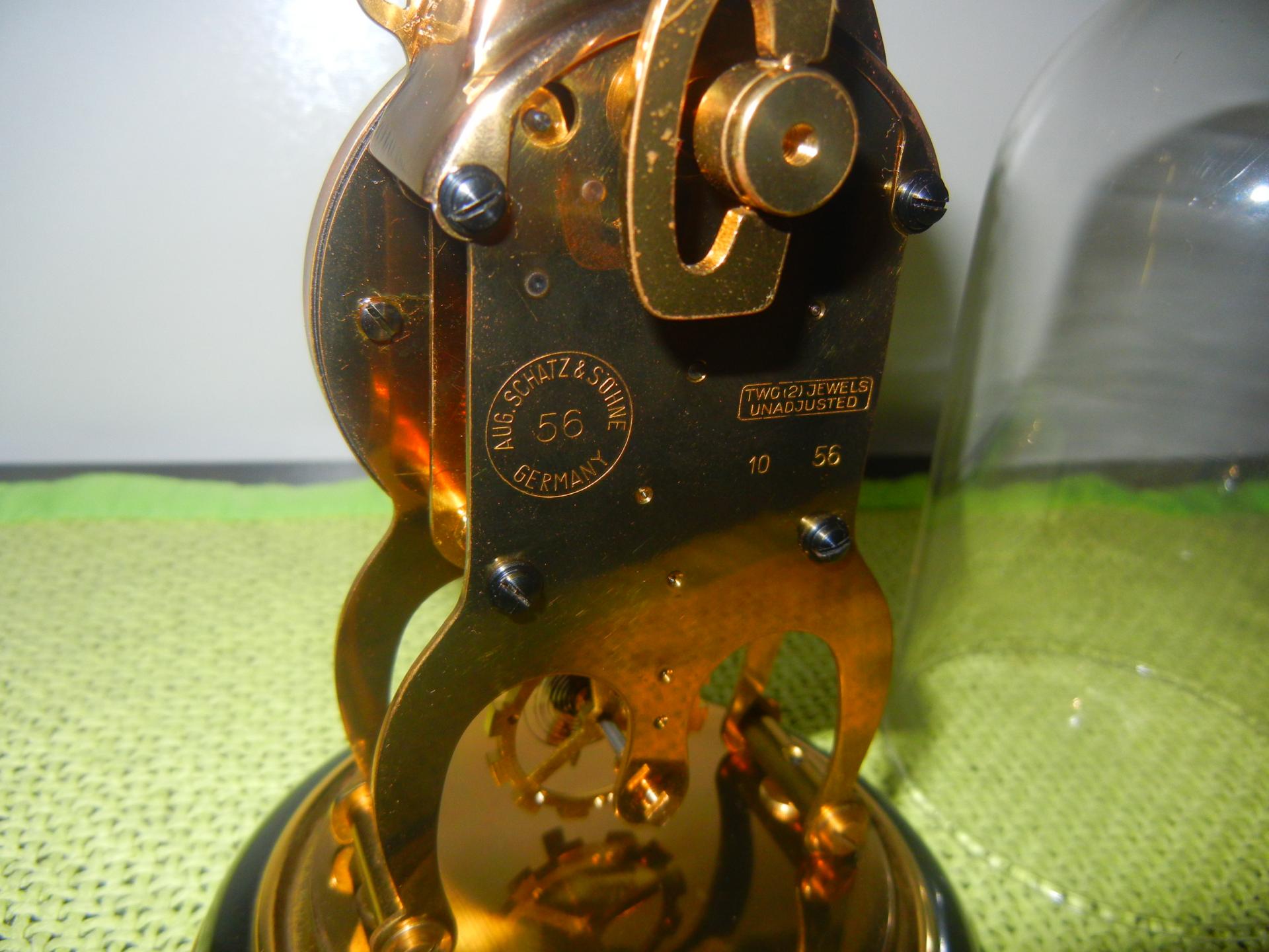 Aug shatz & sohne, cal 56, 2 rubisa, osmodnevni, 1956. Godina, oba su u kolekciji iako su identični, jedan ima stakleno zvono i proizveden u 10 mjesecu 1956, drugi ima plastično, 11 mjesec 1956., germany