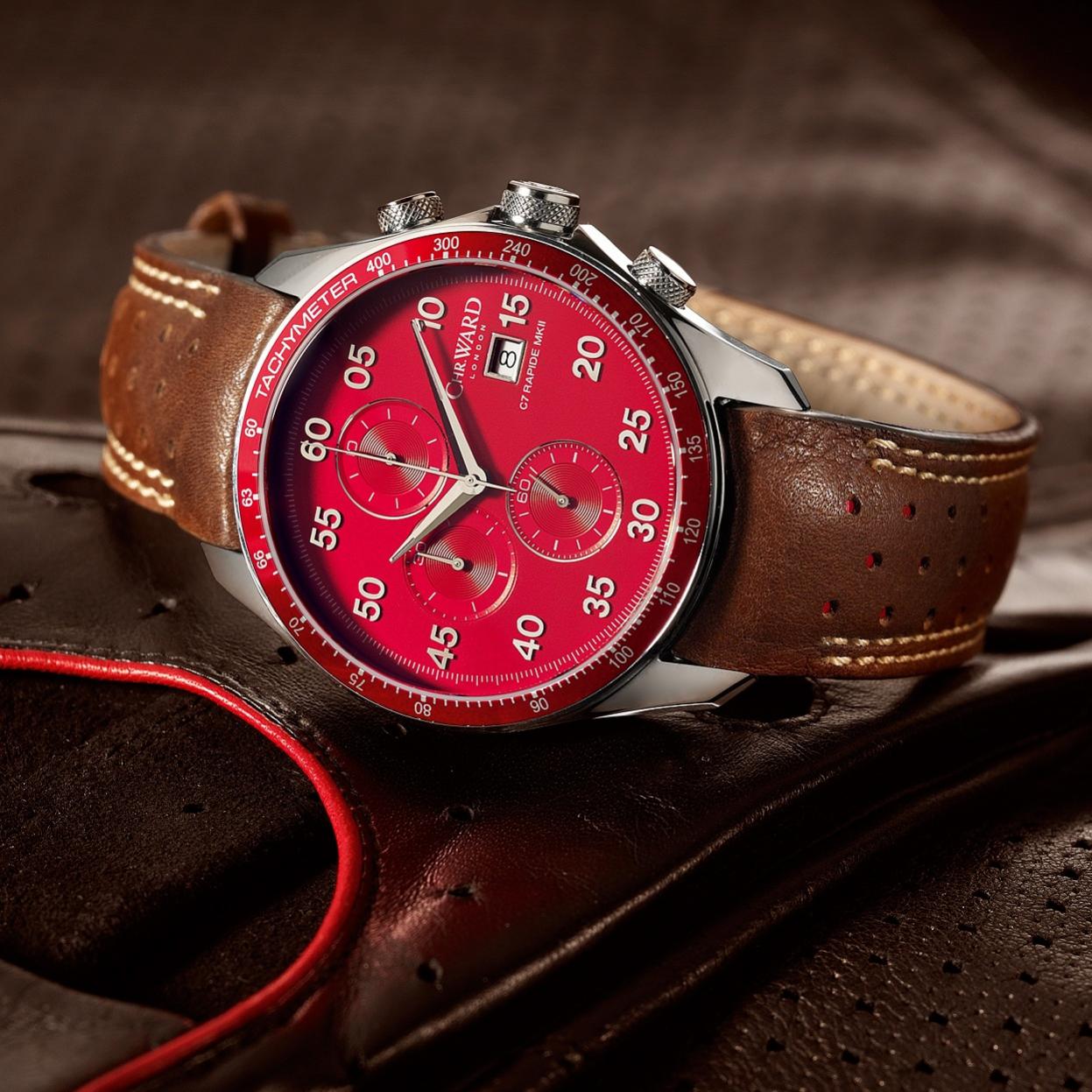 Crvena boja predstavlja sinonim za italijanske proizvođače automobila kao što su: Alfa Romeo, Lancia, Maserati i naravno Ferrari. Proizvođač satova Christopher Ward je predstavio novo limitirano izdanje svog C7 modela, pod nazivom C7 MK II Italian Racing Red.
