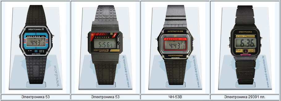 Kada govorimo o proizvođačima, ne smemo izostaviti i jednu fabriku koja se nalazi u Belorusiji, a aktivna je i danas. U pitanju je Integral Elektronika, a sajt fabrike se nalazi na sledećem linku: наручные электронные часы Электроника | ОАО "Завод Электроника" Na linkovanoj strani mogu se videti satovi koji se i danas proizvode. Prvi model beloruske fabrike bio je Elektronika-5 sa oznakom 5-202, kalibar 30350. Ovaj model imao je šest cifara, sati i minuti su bili odvojeni tačkom, a sat je posedovao i mogućnost korekcije broja dana u mesecu, o čemu svedoči i jedan od modela sa slika.