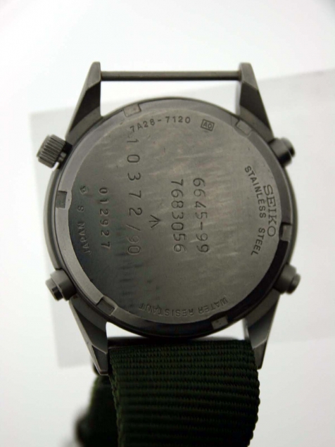 U okviru grupe slika 27 vidimo Seiko 7T42-6A00 na gumenom kaišu . Vojna vezija ( SAAF ) imala je orginalnu Seiko narukvicu.