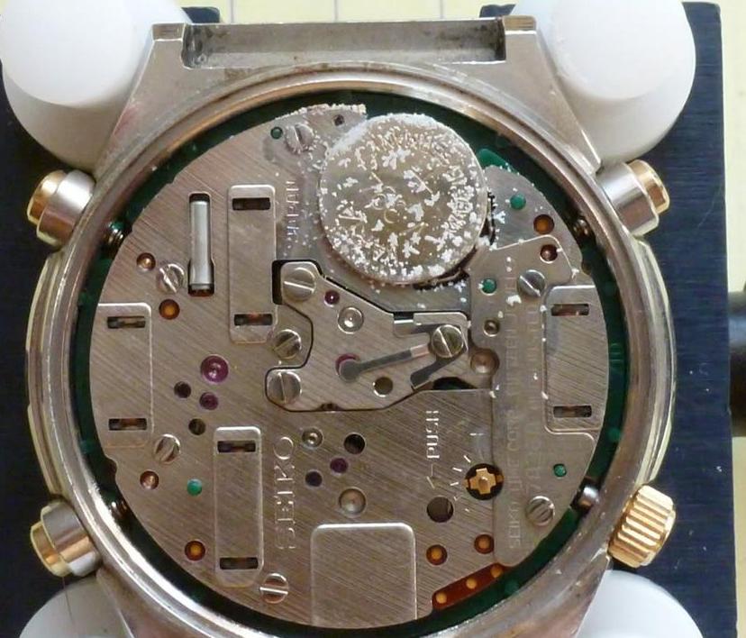 Međutim da ništa nije neuništivo pokazuju sledeće fotografije . Najveći neprijatelj svakog mehanizma na baterije jeste sama baterija tj. njeno curenje. Šta se desi kada se ugradi loša- nekvalitetna baterija ili kada se prazna baterija ne zameni na vreme pokazuju sledeće fotografije (možemo čak videti i jedan Orient sa mehanizmom J3920 što je ustvari mehanizam 7A38 koji je uništen zbog curenja baterije ) .