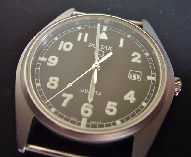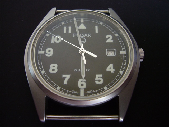 Vreme je da se vratimo na vojne satove. Seiko je kompanija u okviru koje posluje nekoliko proizvođača satova ili ćerki firmi. Jedna od njih je Pulsar. U nastavku teksta biće reči upravo o dva službeno izdavana vojna Pulsar sata. Jedan model je pešadijski sat a drugi je RAF hronograf. Seiko nije osnovao Pulsar, to su učinili Hamilton i Electro/Data Inc. 1972. godine . Međutim 1978. godine Seiko kupuje Pulsar i od tada Pulsar posluje pod kapom Seika, ugrađuje Seiko mehanizme i praktično predstavlja jeftiniju verziju Seiko satova. Sat o kome će biti reči u ovom delu teksta, među kolekcionarima i ljubiteljima, poznat je pod nazivom Pulsar G10 . Prema dostupnim podacima kompanija Pulsar je 2001. godine pobedila na tenderu ( „won the contract“ ) koji je raspisalo Ministarstvo odbrane Velike Britanije . Treba uzeti sa rezervom da je Pulsar pobedio na tenderu 2001. godine jer ima Pulsar satova koji su službeno izdavani i pre 2001. godine. Moguće je da su u pitanju kratkoročni ugovori pa se tenderi raspisuju na svakih nekoliko godina. Bilo kako bilo , satovi su tipičnog vojnog izgleda , pravi pešadijski satovi. U ovim satovima mogu se naći V732 i 7N32 mehanizmi. Oba sata tj. mehanizma pokazuju samo osnovno : sate, minute, sekunde i datum. Na brojčaniku se nalazi zaokruženo slovo L što je skraćenica od „luminous“ ili Lumibrite ( Seiko svetleći premaz ) . Negde se pominje i Luminova ali pre će biti da je Pulsar kao Seikova firma stavljao Lumibrite nego Luminova premaz.