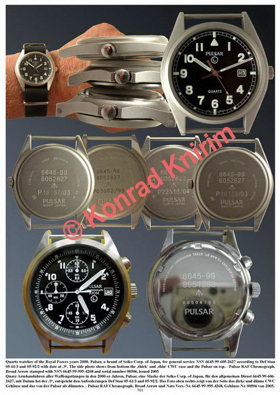 Na sledećoj fotografiji možemo videti fotografisanu stranicu iz knjige Konrad Knirim-a , koji je veliki poznavalac vojnih satova, i na kojoj možemo videti službeno izdavane Pulsar vojne satove koji su opisani u okviru ovog teksta.