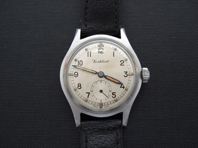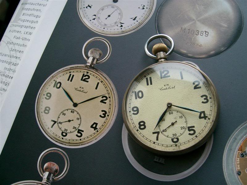 Džepni sat Cortébert ( Kriegsmarine ) , mehanizam nosi oznaku 554, 17 rubina, prečnik sata je 40 mm. Može se videti sastrugana vojna oznaka sa poklopca sata. To nije tako retka pojava , mnogi su skidali oznake sa svojih službenih satova kako bi prikrili učešće u ratu .