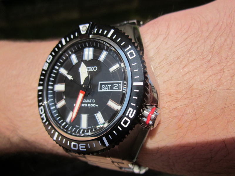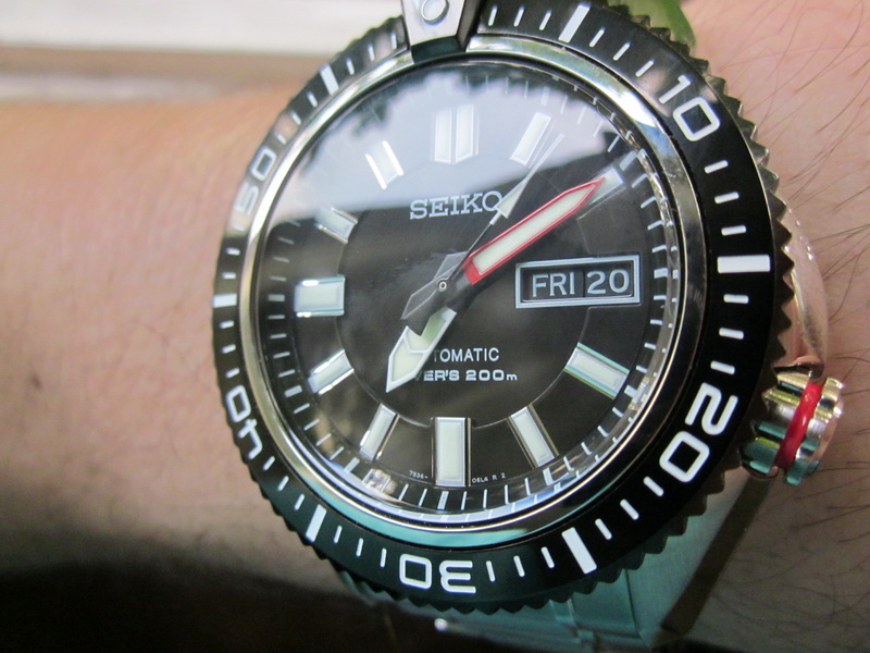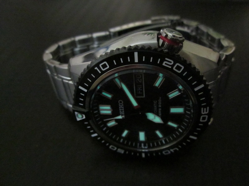 the Seiko Lumibrite rich-filled hour marker and hands is so visible in the dark but the shiny domed crystal is so reflective when reading in bright daylight and intense indoor lighting.