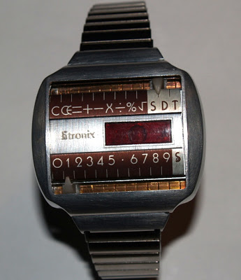 Na ovoj slici je prototip sata sa kalkulatorom, proizvođač Litronix.