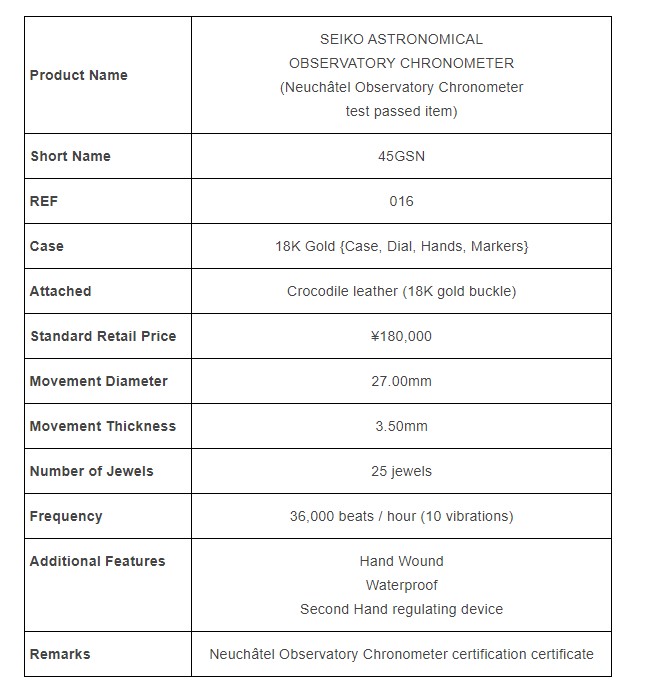 Ako bi se najbolja verzija kalibra 4520A našla na prošlogodišnjem takmičenju (1967), ona bi sa ukupnim scorom 5,80 zauzela 173 mesto. Prosečni skor svih 73 primeraka tog kalibra iznosi 10,73 (što znači, da ih je polovina ispod toga rezultata). Sa tim skorom bi se u primeru učešća u takmičenju 1967 godine, prosečan kalibar 4520 A svrstao na 282 mesto. Razlika u performansu je očigledna. Prosečan skor svih 73 satova, koji su izašali na tržište je skoro jedanput slabiji od najboljeg primerka iz te serije i čak 6 puta slabiji od skora takmičarskog kalibra. Naravno, sve ovo znači, da su sva ta 73 sata sa kalibrom 4520A odlični satovi ali ne zaboravimo, da je 180.000 Yena, za primerak predstavljalo 4,5 prosečne japanske plate i da si za jednog od njih mogao kupiti čak 6 "običnih" Grand Seika sa istim kalibrom. Zenith, Longines, Omega i Girrard Peregaux su serijski pobednici Neuchatel takmičenja ali da su 6 puta više naplaćivali za satove, koji bi u sebi nosio "pobedničku" verziju se nije događalo.