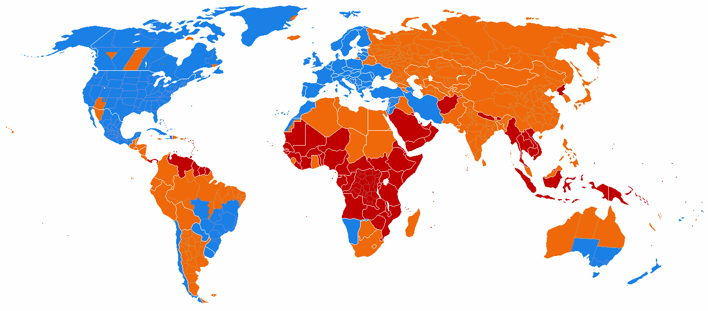 Prikaz letnjeg / zimskog računanja vremena na karti sveta.